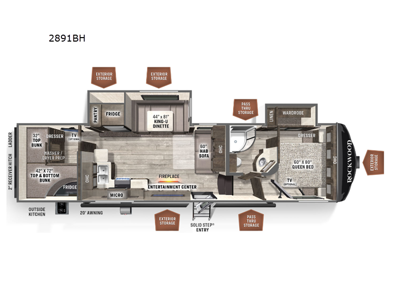 Additional $1000 rebate for financing with Maxie Price RV in house lender .Forest River Rockwood Ultra Lite fifth wheel 2891BH highlights: