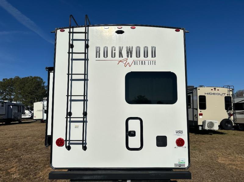 With any Rockwood Ultra Lite fifth wheel and travel trailer by Forest River RV, the superior construction includes a painted fiberglass front cap with clear coat, a full laminated one-piece walkable roof, aluminum truss roof bracing, and a six-sided full aluminum frame. Some safety standards include Dexter torsion axles, MORryde strut assist steps, and the TST tire pressure monitor system. The interior offers the OneControl panel with WeRV app control, screwed and glued, solid wood cabinet doors and drawers with hidden hinges, metal drawer glides and residential or upgraded hardware. You'll also find solid surface kitchen countertops, designer kitchen backsplash, plus many more features depending on the Rockwood Ultra Lite you choose!