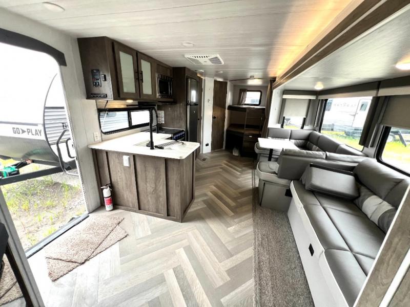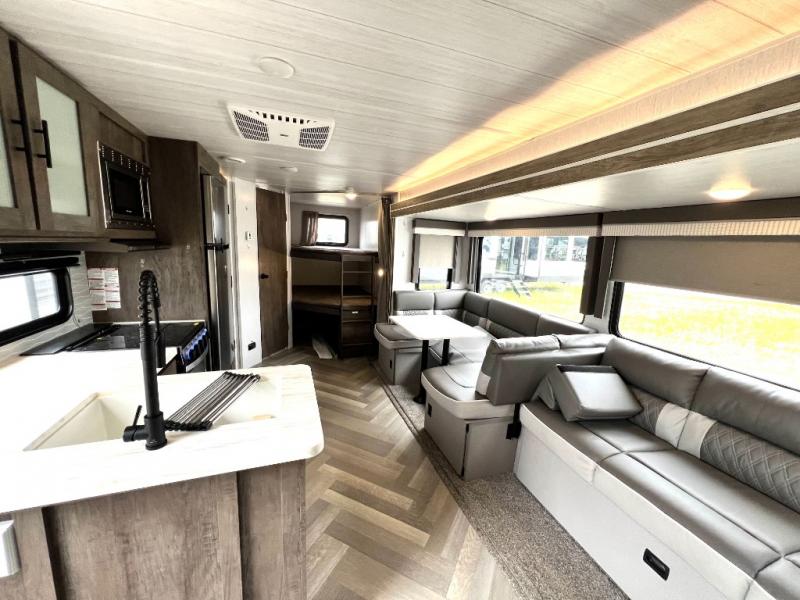 As you get away for the weekend to enjoy nature's beauty, you'll be so glad that you chose to bring this Salem travel trailer along! The full kitchen with its undermount sink, cooktop, and two pantries will allow you to prep meals whenever it is convenient for you, and the large slide that contains the U-shaped dinette and sofa will deliver extra space to the interior so that you don't feel cramped. Your kids will be able to invite a friend or two because of the double-size bunks that are in the back, and since these bunks are right next to the full bathroom, your kids won't have to search far in the middle of the night.