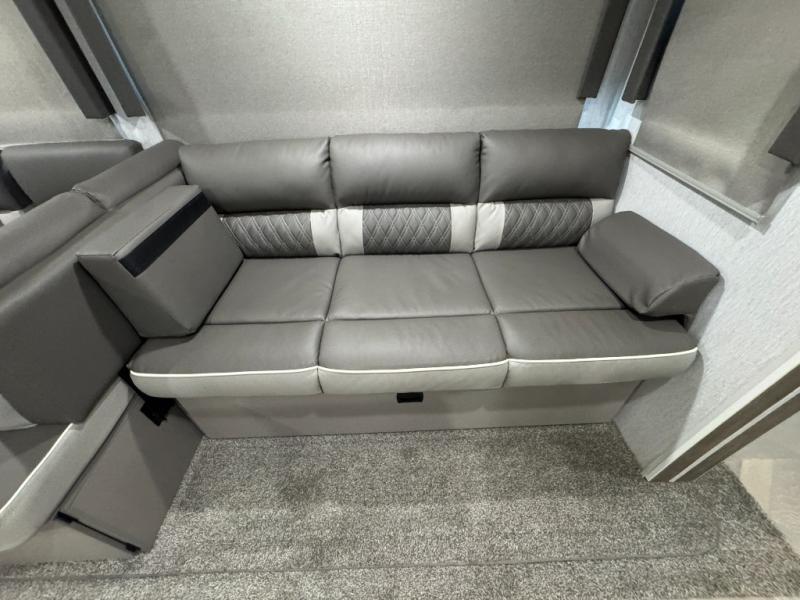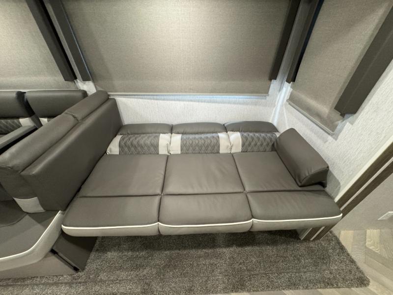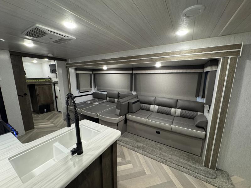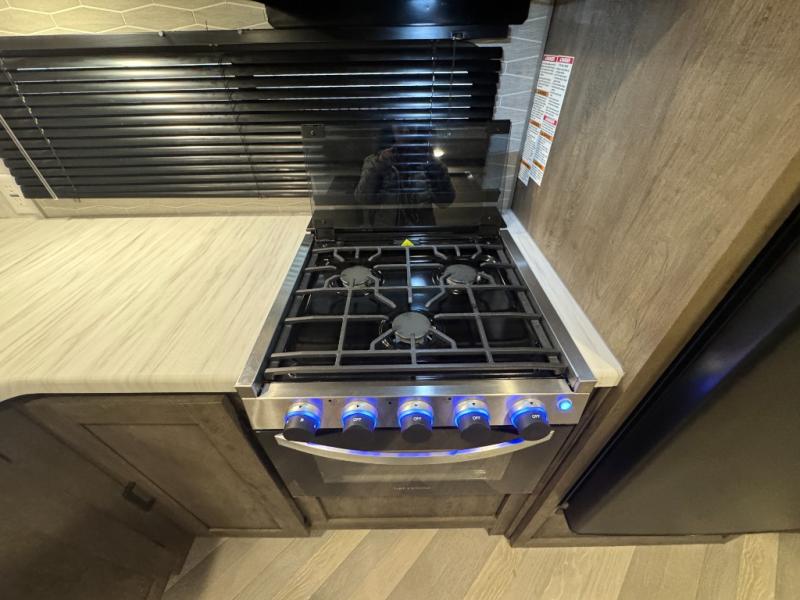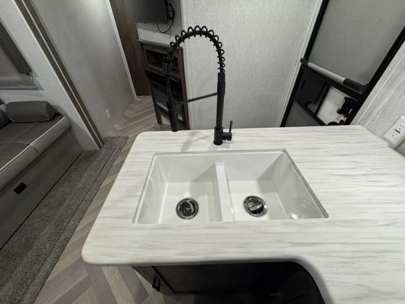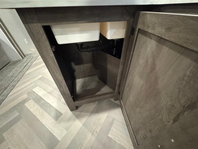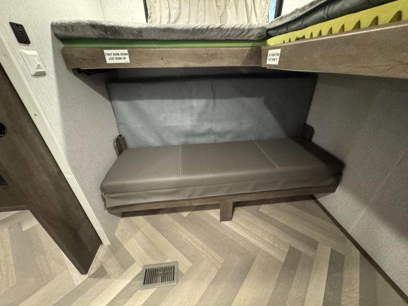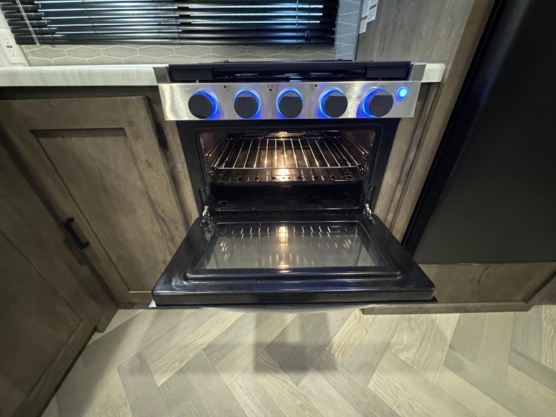 Pack your bags and have the best family vacation in this Salem travel trailer! The kiddos will have their own privacy with the rear private bunkhouse with two bunk beds above a Versa queen bed and a bike door for easy access. You will have your own privacy with the front private bedroom which has wardrobes on either side of the queen bed and a closet to store your clothes, plus a hamper to keep dirty clothes separate. Keep everyone's bellies full with the three burner cooktop, the walk-in pantry, and the countertop extension or you can breathe in some fresh air while cooking at the outside camp kitchen. The Versa U-shaped dinette and Versa lounge not only offer comfortable places to dine and relax, but also sleeping spaces when they are converted!