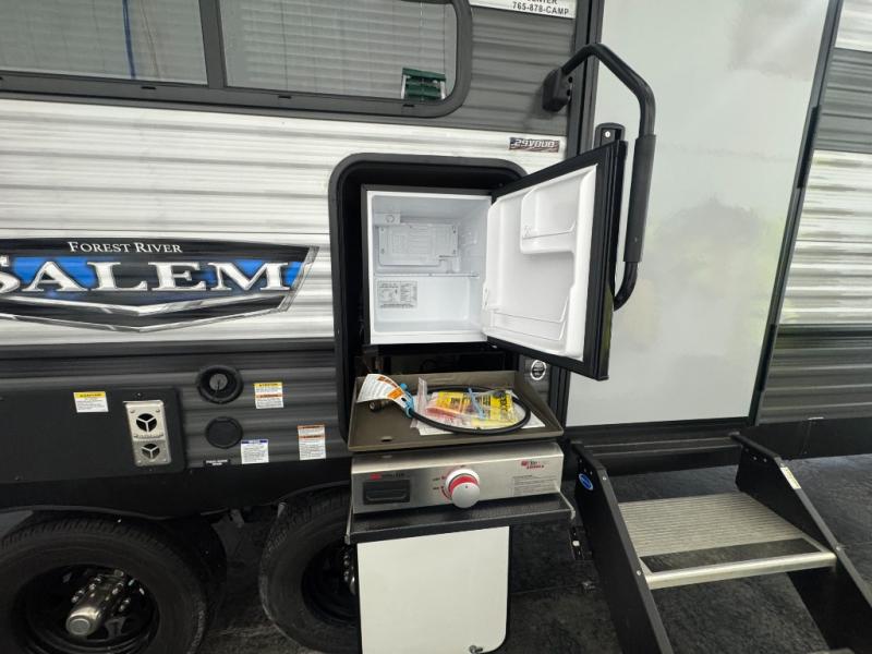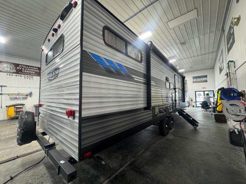 The Forest River Salem travel trailers come in a variety of layouts and designs because families come in a variety of shapes and sizes! Each model has been customized with the very best features so that you and your family always feel cared for when you travel! You will find an extra-large pass-through storage so that you can bring along all of your favorite outdoor gear, and the high-efficiency 15,000 BTU ducted air conditioner will keep you fresh and comfortable while the heat blazes outside. The two outside speakers will provide a fun atmosphere for you and your friends, and the bedside USB chargers will be so handy to have because it will allow you to keep your electronics charged throughout your entire trip.