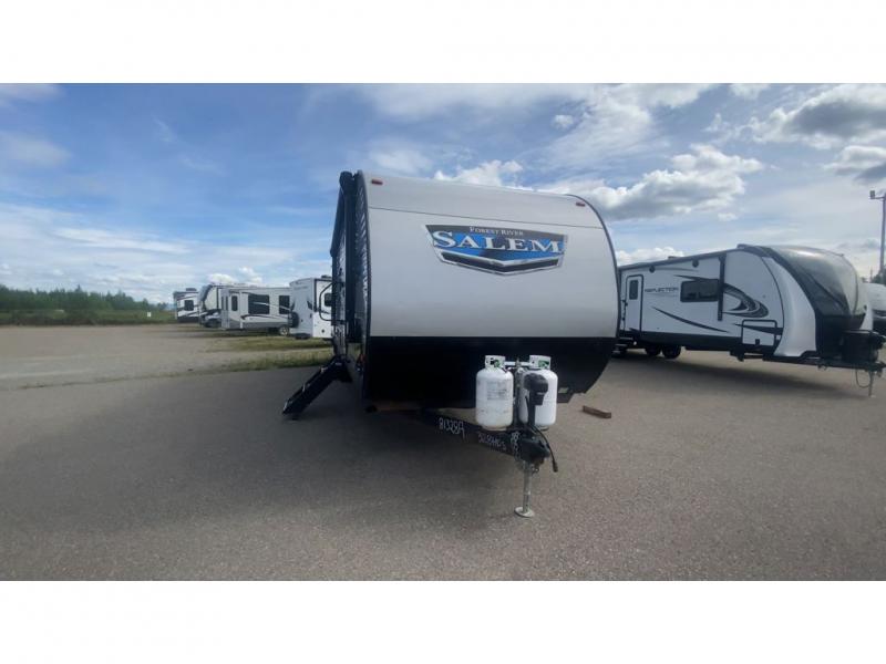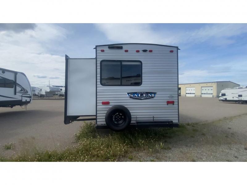 The Forest River Salem travel trailers come in a variety of layouts and designs because families come in a variety of shapes and sizes! Each model has been customized with the very best features so that you and your family always feel cared for when you travel! You will find an extra-large pass-through storage so that you can bring along all of your favorite outdoor gear, and the high-efficiency 15,000 BTU ducted air conditioner will keep you fresh and comfortable while the heat blazes outside. The two outside speakers will provide a fun atmosphere for you and your friends, and the bedside USB chargers will be so handy to have because it will allow you to keep your electronics charged throughout your entire trip.