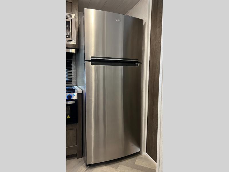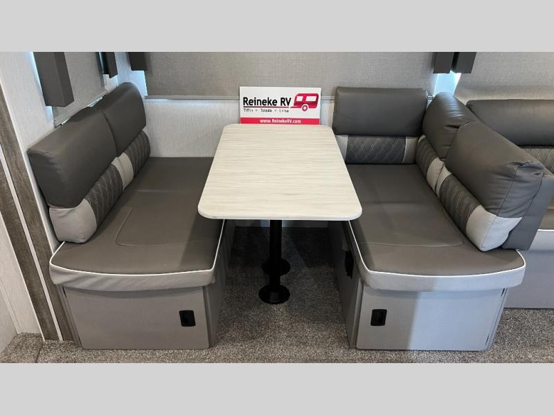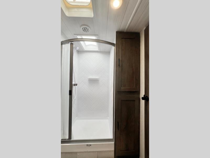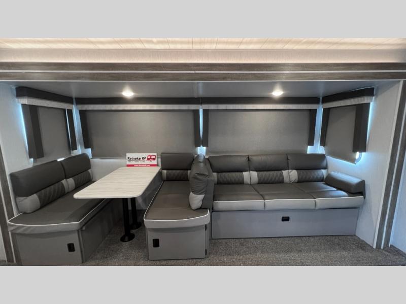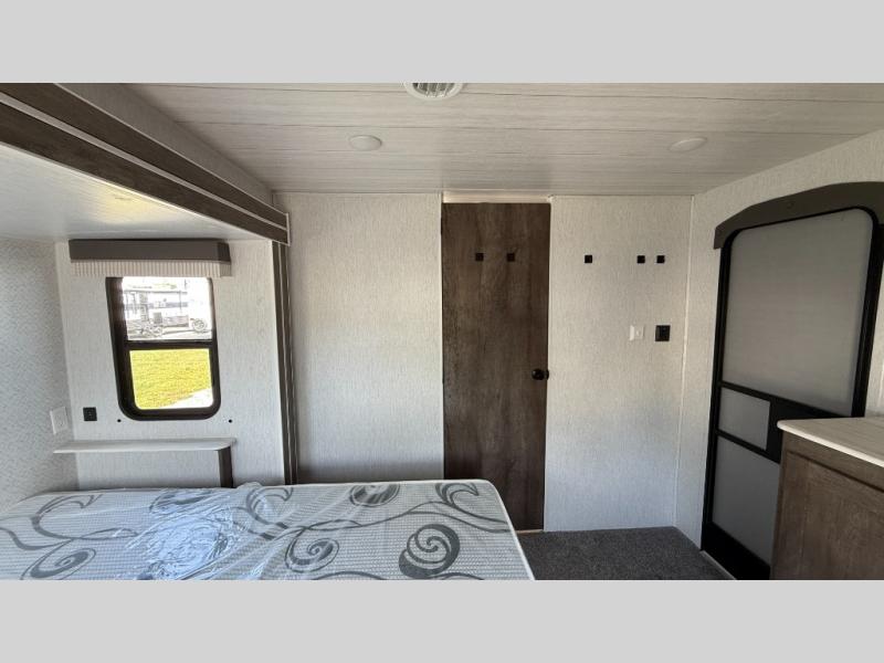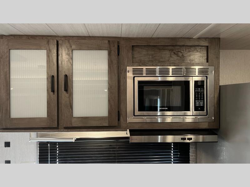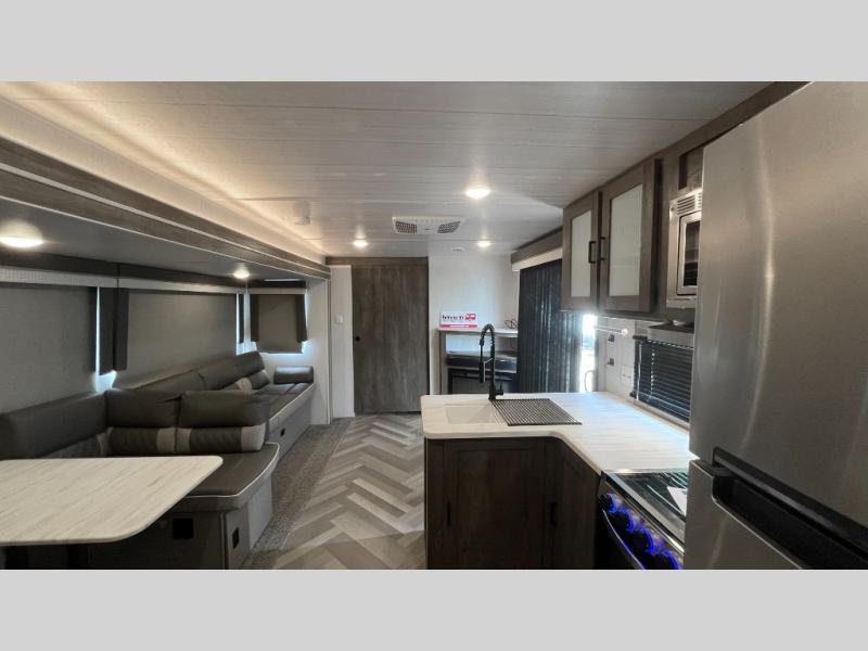 After you've had a long day of sightseeing and adventuring, you will certainly appreciate having this Salem travel trailer to come back to! If you aren't ready to stay indoors for the night, you can keep the party going outside under the 18' awning, and if you need any extra lawn chairs, you can grab them from the pass-through storage compartment. And, you don't have to stop enjoying a good fire just because you have to go inside because the interior fireplace will provide great ambiance. There are dual entry doors which will definitely come in handy when camping with a large group, and there is plenty of seating space on the booth dinette and versa lounge in the main living area.