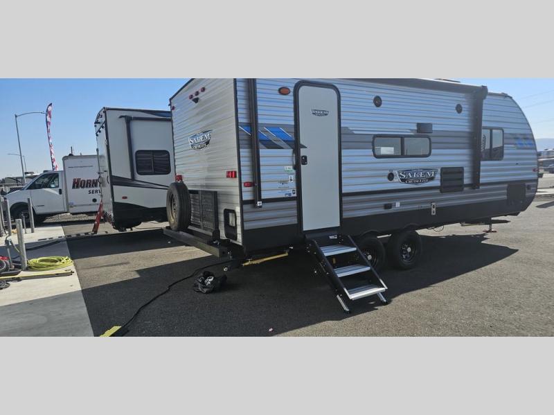 Each one of these Forest River Salem Cruise Lite travel trailers offer quality and value with a list of great features! Each model comes with the Best in Class Value package which includes an upgraded appliance package, true stabilizer jacks with JT StrongArms, USB port package, and Stow N Go storage below the bed and dinette. The modern cloth roller shades come with AutoStop, and the SolidStep double step ensures you will safely enter the unit. You will enjoy looking out at your beautiful scenery each morning through the extra large panoramic window on the main slide. Check out a model in person today!