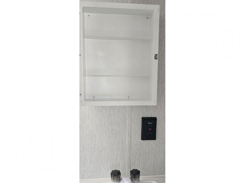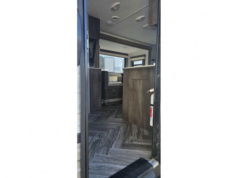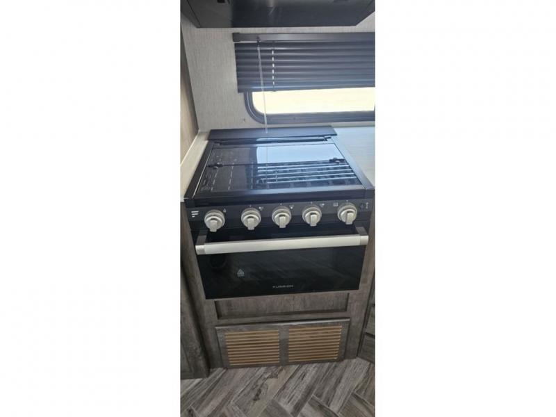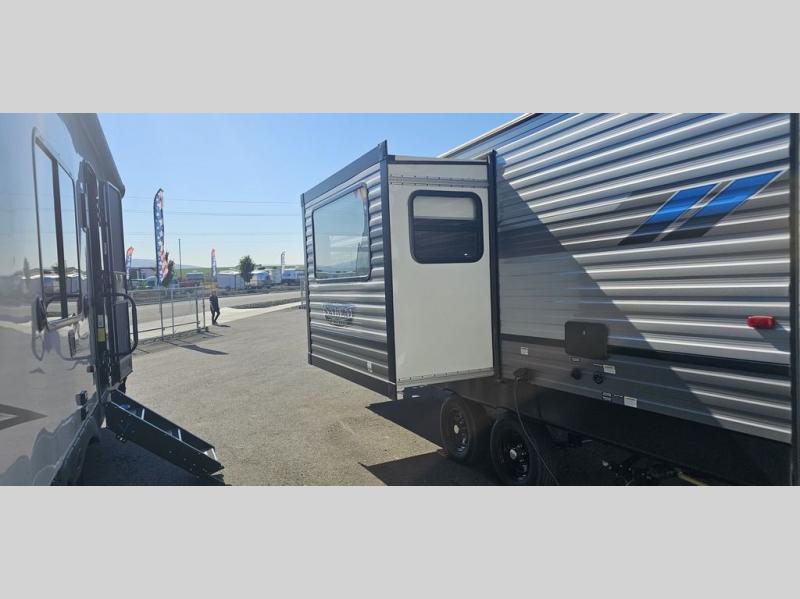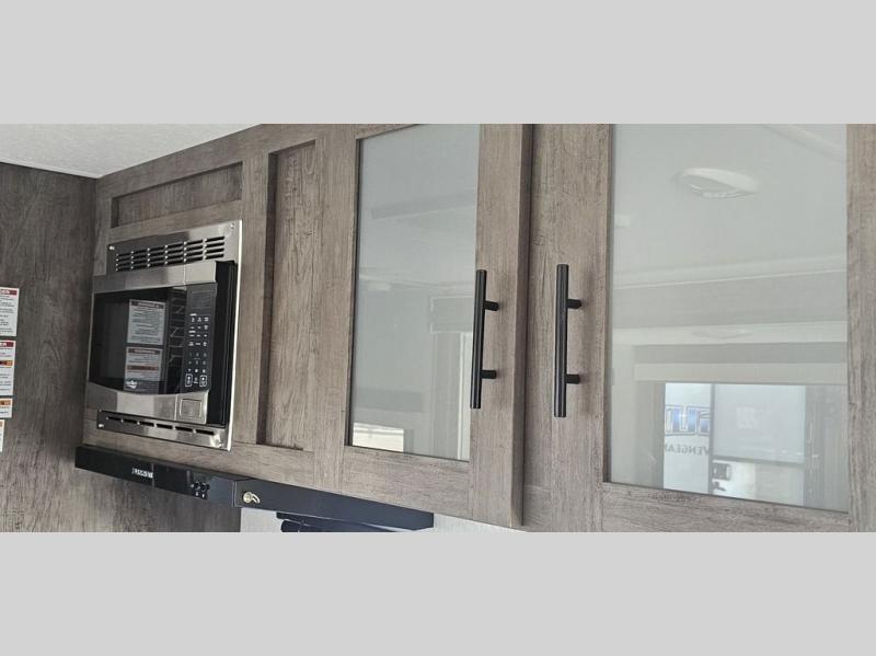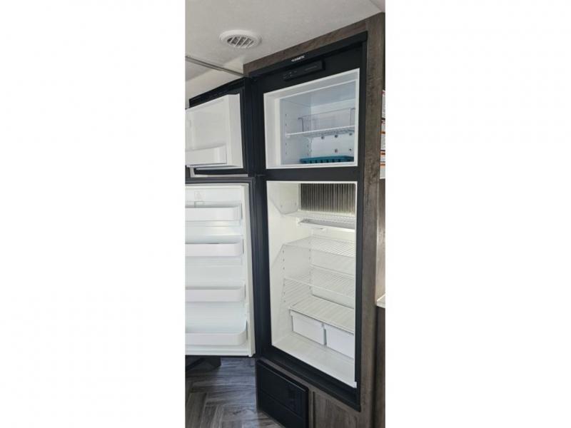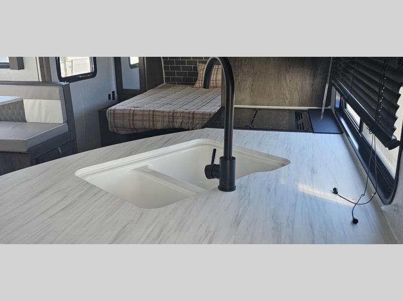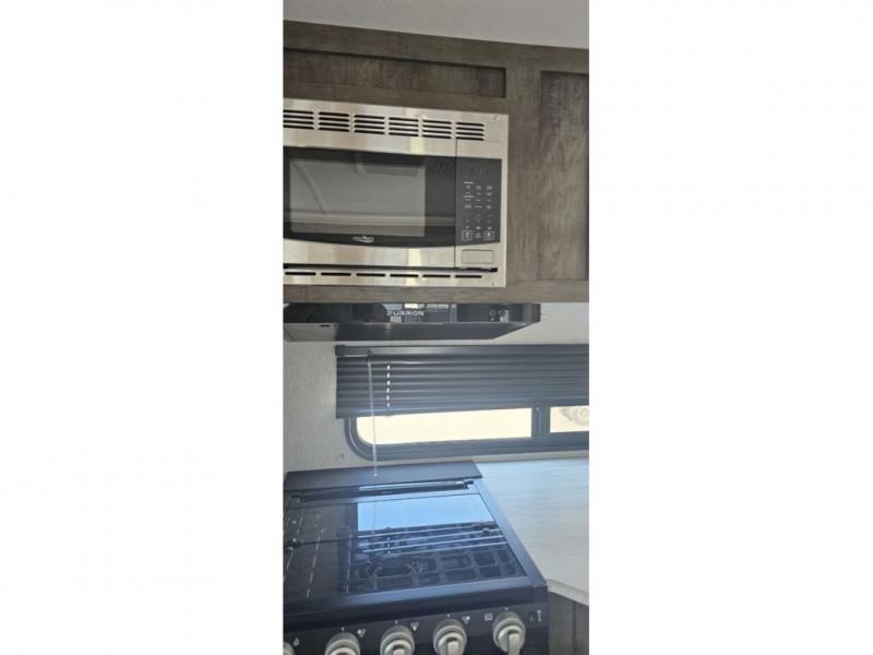 Pick your favorite campsite and load up this travel trailer for a fun weekend getaway! There is a wardrobe/pantry big enough to store your favorite snacks and a three burner cooktop for you to create delicious home cooked meals. The U-shaped dinette slide is not only great for enjoying your meals at or playing card games, but also for transforming into an extra sleeping space. The rear corner bathroom has everything you will need to end each night feeling squeaky clean including a radius glass shower. The front RV queen bed welcomes you to enjoy a good night's rest in privacy when you draw the privacy curtain and wardrobes to keep your clothes looking their best!