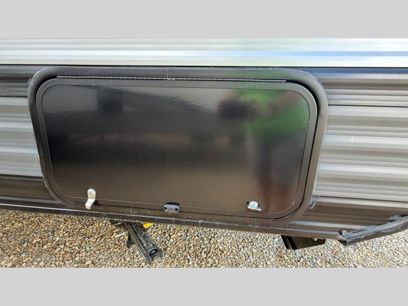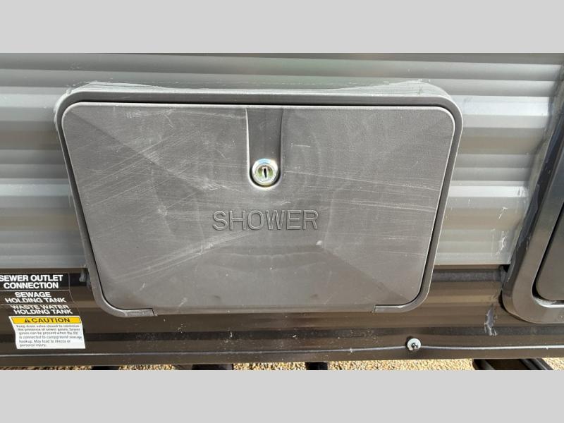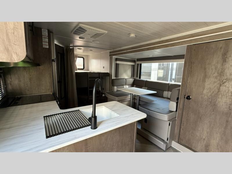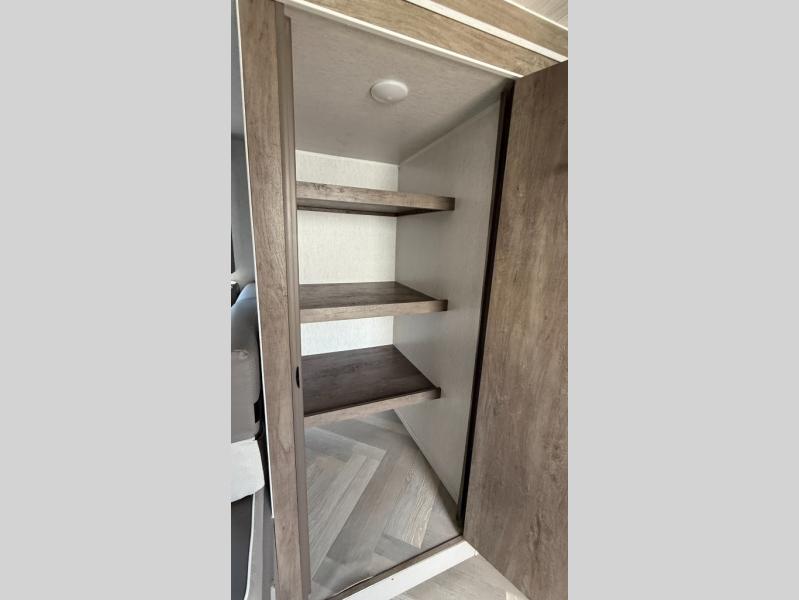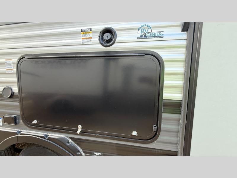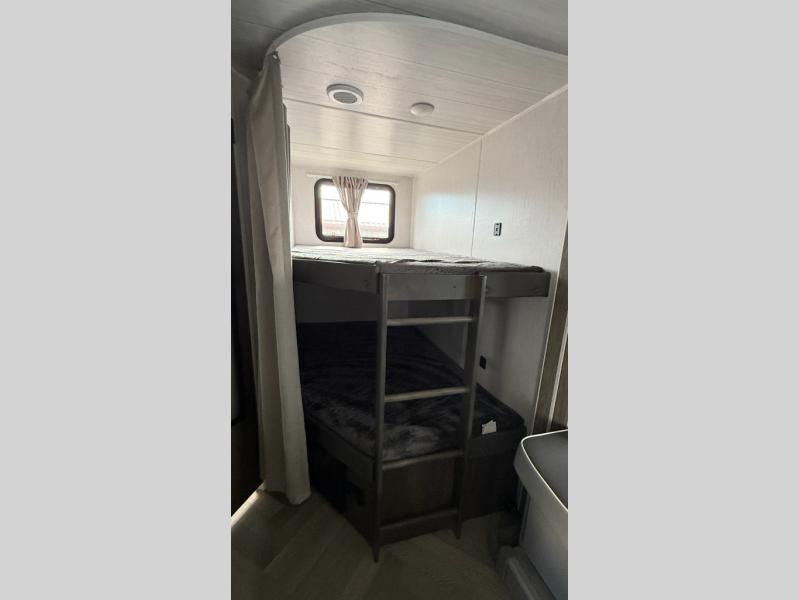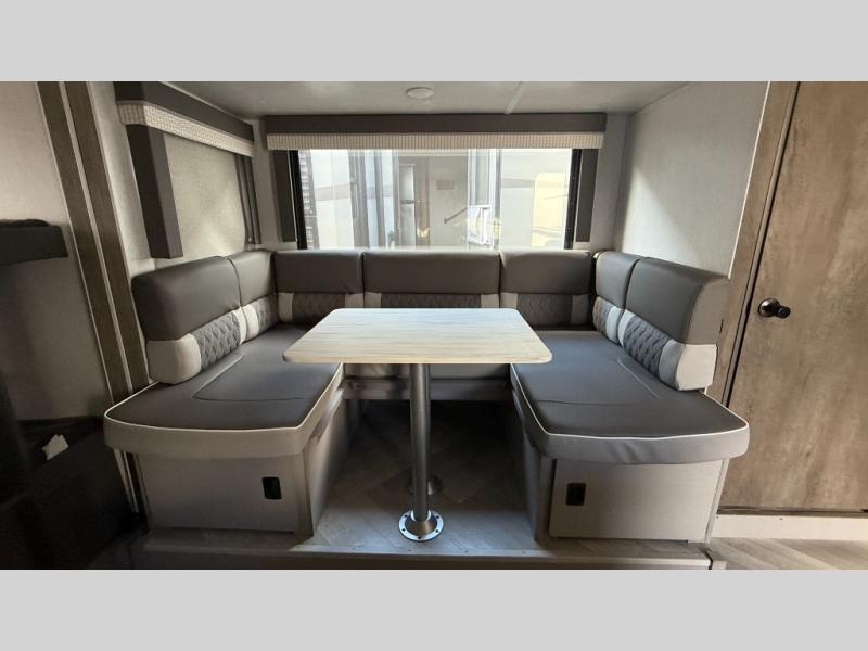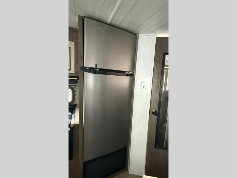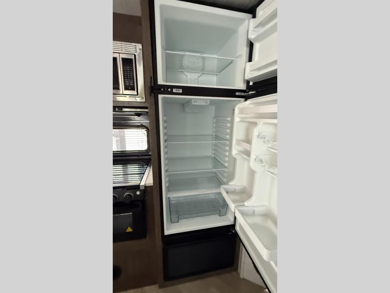 This travel trailer is big enough for the whole family to join in on the fun and weighs in at less than 6,000 lbs! The kiddos can sleep on the corner 46" 74" double-over-double bunk beds, and you can sleep on the queen bed inside the front private bedroom, plus the U-shaped dinette can transform into an extra sleeping space. It also has a panoramic window for you to look out at your beautiful scenery while you eat. The rear corner bathroom has everything you will need to get squeaky clean each morning, as well as an exit/entrance door to the unit. The oversized 11 cu. ft. refrigerator will keep your perishables fresh and the three burner cooktop is just waiting for you to create a delicious meal, plus the walk-in pantry is big enough to store everyone's favorite snacks!