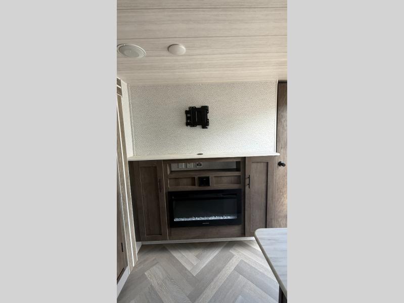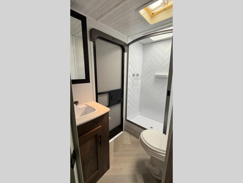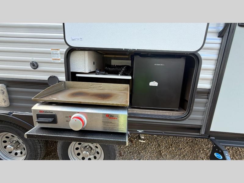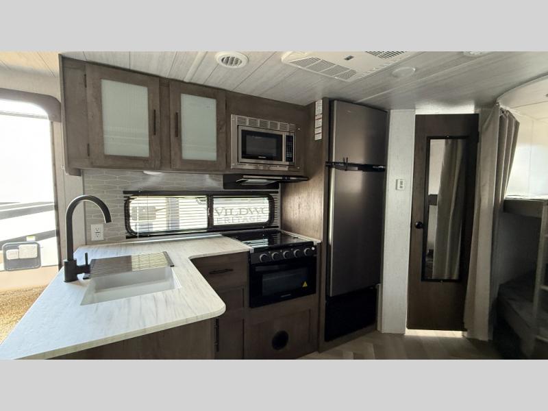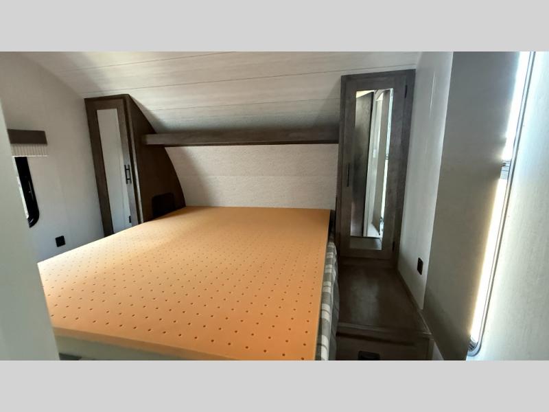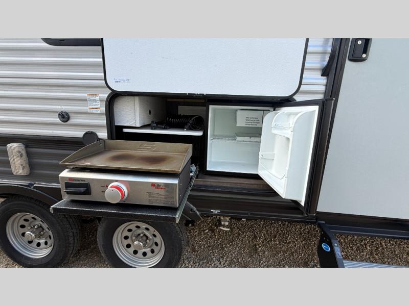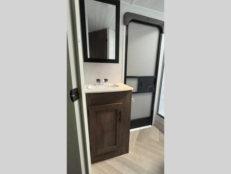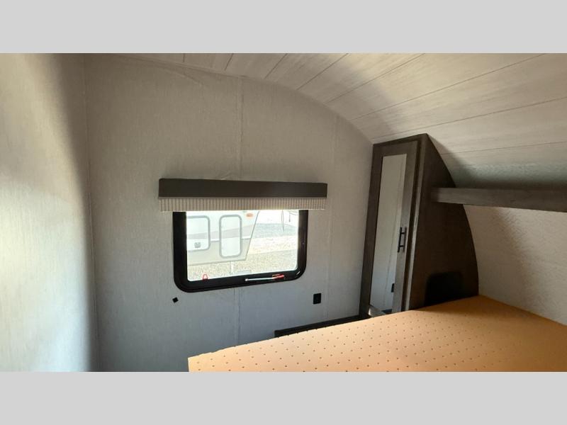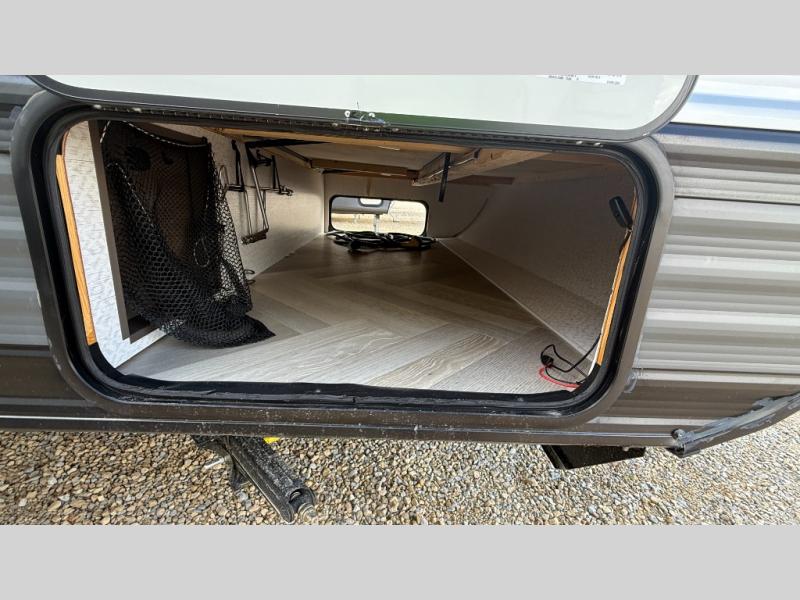 This travel trailer is big enough for the whole family to join in on the fun and weighs in at less than 6,000 lbs! The kiddos can sleep on the corner 46" 74" double-over-double bunk beds, and you can sleep on the queen bed inside the front private bedroom, plus the U-shaped dinette can transform into an extra sleeping space. It also has a panoramic window for you to look out at your beautiful scenery while you eat. The rear corner bathroom has everything you will need to get squeaky clean each morning, as well as an exit/entrance door to the unit. The oversized 11 cu. ft. refrigerator will keep your perishables fresh and the three burner cooktop is just waiting for you to create a delicious meal, plus the walk-in pantry is big enough to store everyone's favorite snacks!
