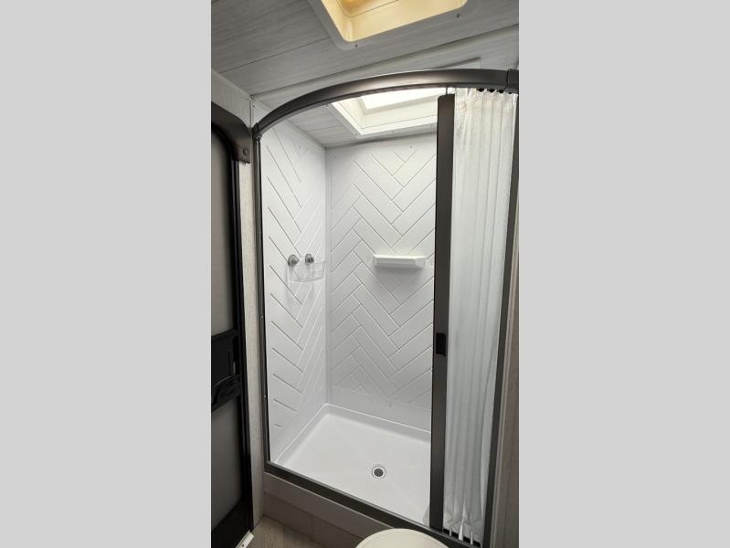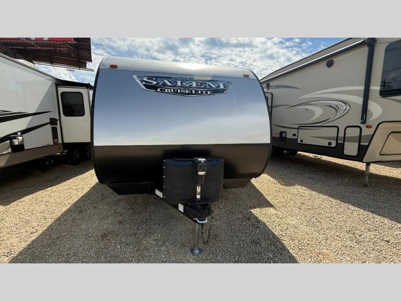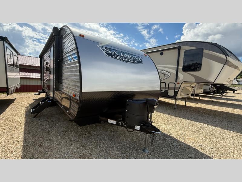 Each one of these Forest River Salem Cruise Lite travel trailers offer quality and value with a full list of great features! They are built with a fully walkable, one piece SuperFlex roof, a powder coated I-beam frame, a cambered chassis, and has R-7 fiberglass insulation throughout to keep the heat in during the winter and the cool air in from the 13.5k A/C during the summer. The aerodynamic front radius profile makes it easier to tow these units, and the diamond plate rock guard will keep your unit protected while traveling down the road. Some of the new features you will enjoy are the upgraded door pulls, the skylight over the shower, the roof-mounted solar prep, and much more!