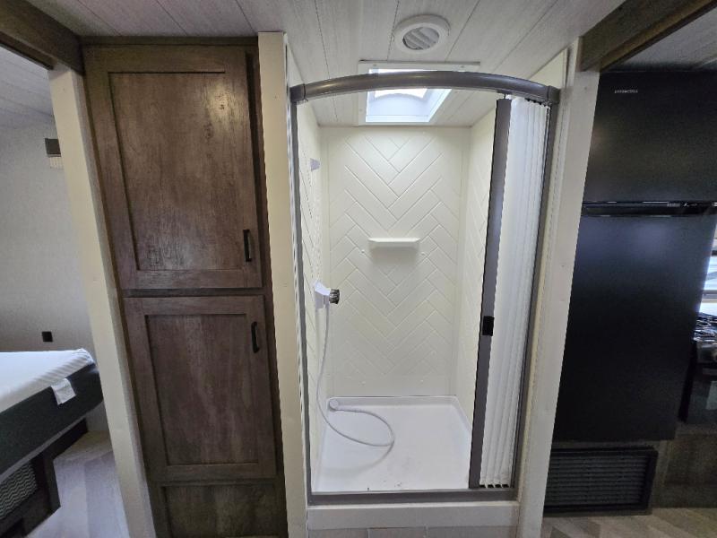Each one of these Forest River Salem Cruise Lite travel trailers offer quality and value with a full list of great features! They are built with a fully walkable, one piece SuperFlex roof, a powder coated I-beam frame, a cambered chassis, and has R-7 fiberglass insulation throughout to keep the heat in during the winter and the cool air in from the 13.5k A/C during the summer. The aerodynamic front radius profile makes it easier to tow these units, and the diamond plate rock guard will keep your unit protected while traveling down the road. Some of the new features you will enjoy are the upgraded door pulls, the skylight over the shower, the roof-mounted solar prep, and much more!