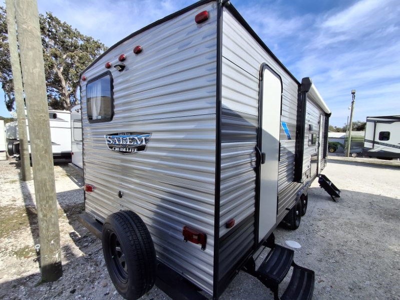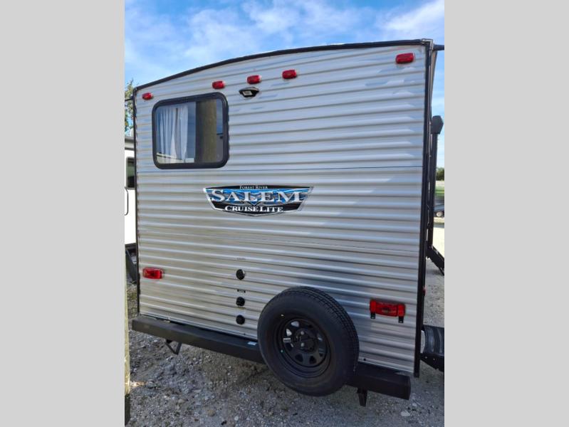 Each one of these Forest River Salem Cruise Lite travel trailers offer quality and value with a list of great features! Each model comes with the Best in Class Value package which includes an upgraded appliance package, true stabilizer jacks with JT StrongArms, USB port package, and Stow N Go storage below the bed and dinette. The modern cloth roller shades come with AutoStop, and the SolidStep double step ensures you will safely enter the unit. You will enjoy looking out at your beautiful scenery each morning through the extra large panoramic window on the main slide. Check out a model in person today!