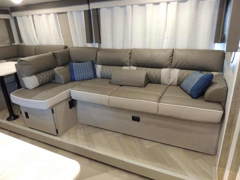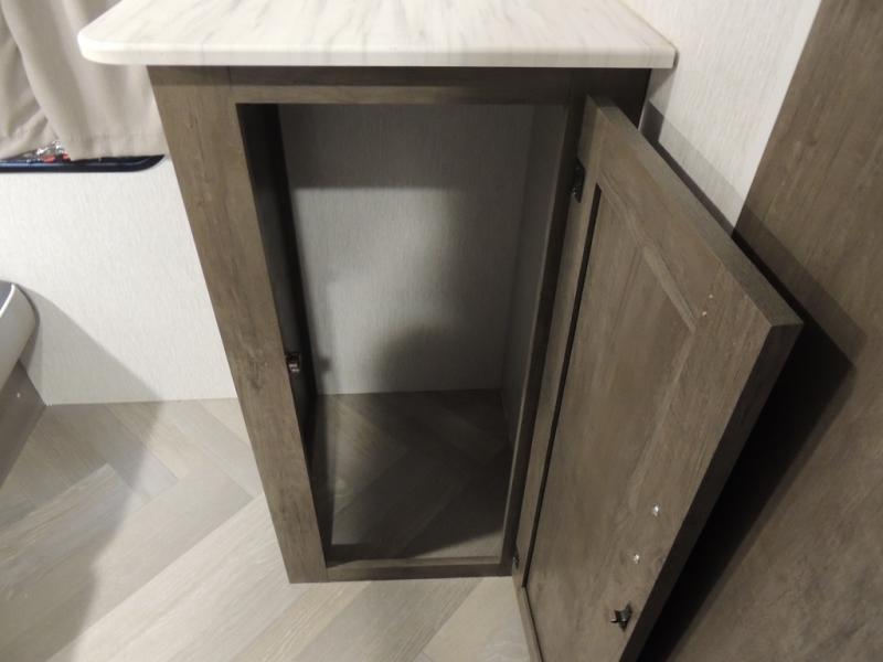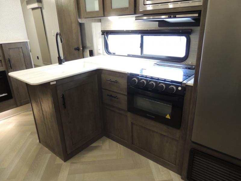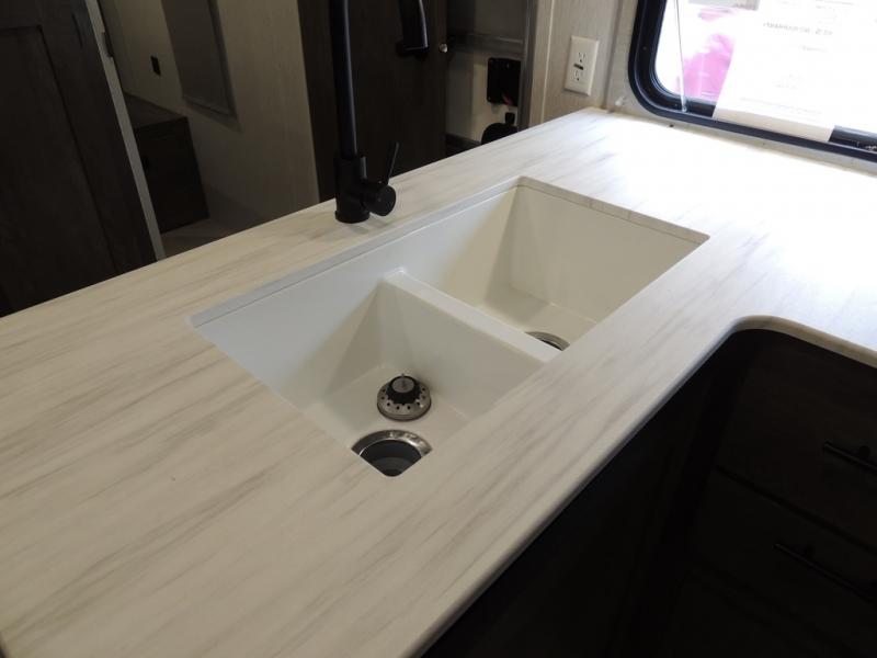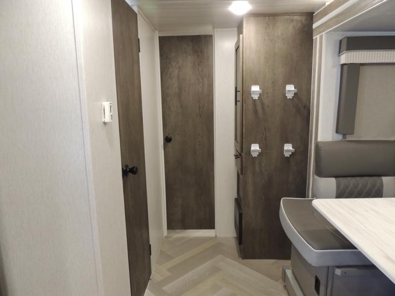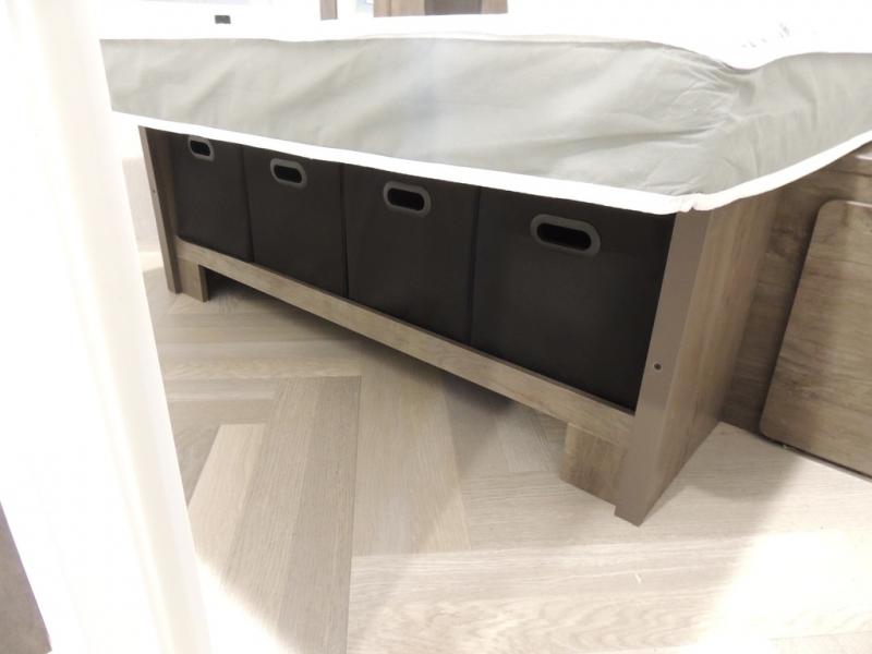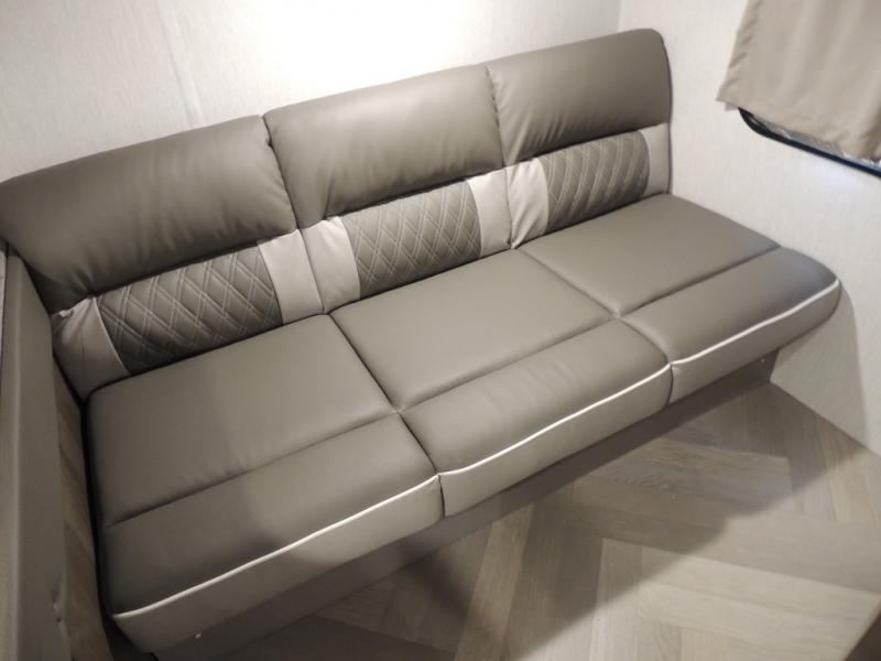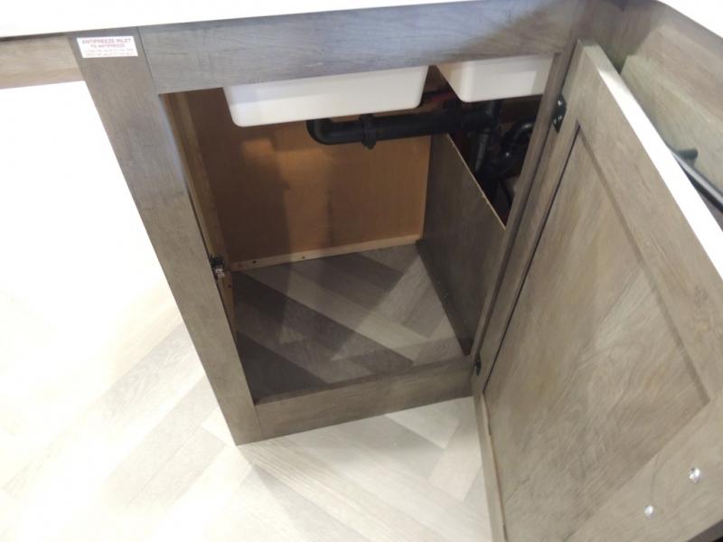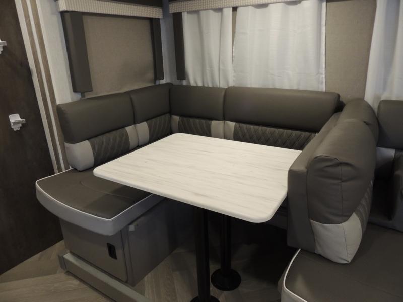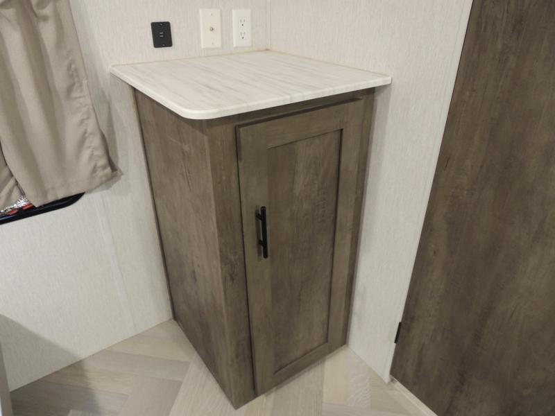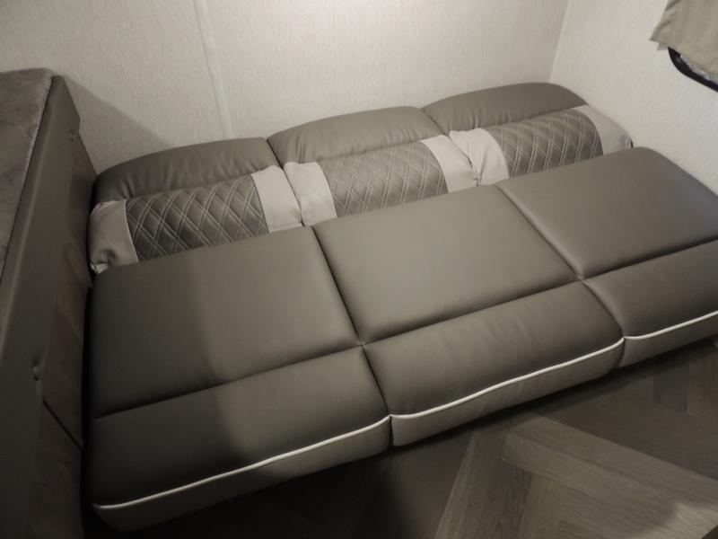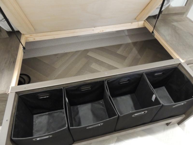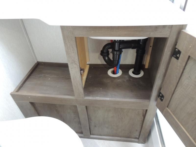 This versatile bunkhouse travel trailer is big enough for the whole family, but still light in weight by weighing in at 6,000 lbs.! The private bunkhouse has a set of 30" x 74" bunk beds and a 30" x 74" bunk bed above a Jiffy sofa. Just outside the bunkhouse is a pantry big enough to store everyone's favorite snacks, and the full bathroom with a walk-in shower. The three burner cooktop is just waiting for you to create a delicious meal, and the U-shaped dinette welcomes you to enjoy your meal in comfort, plus there is a large panoramic window for you to look out at your beautiful scenery. After you have stuffed yourself full, you can head to the Versa-lounge and relax by the fireplace at the entertainment center. The exterior has a pass-through storage area for you to keep your outdoor camping gear, a 16' power awning to protect you, and an exterior camp kitchen!