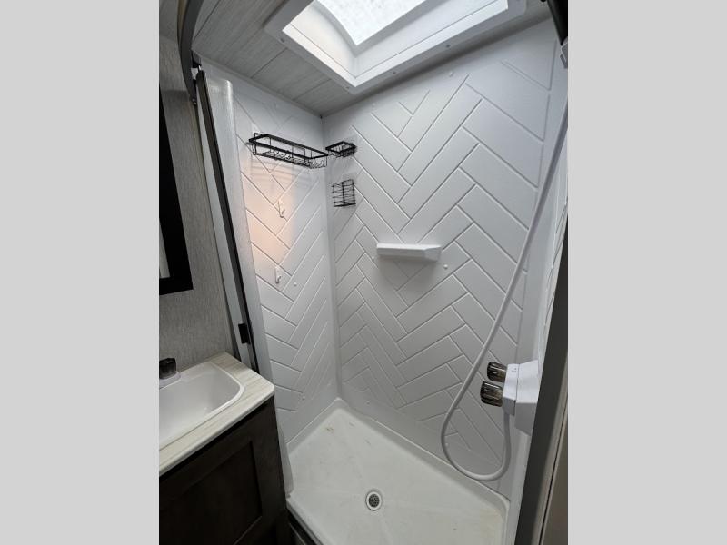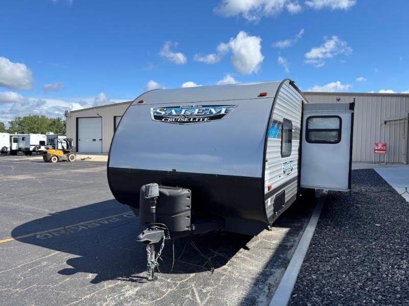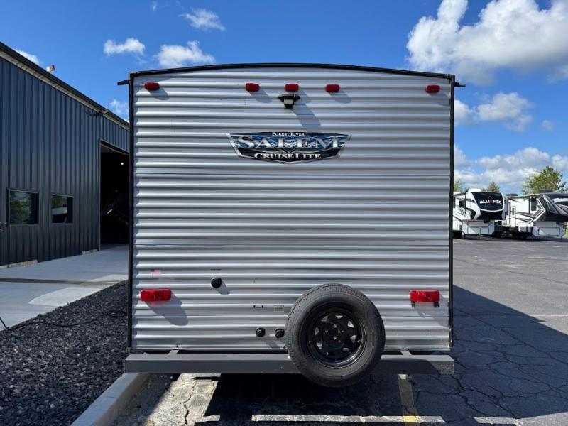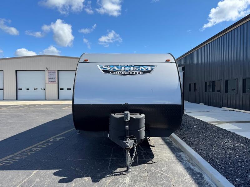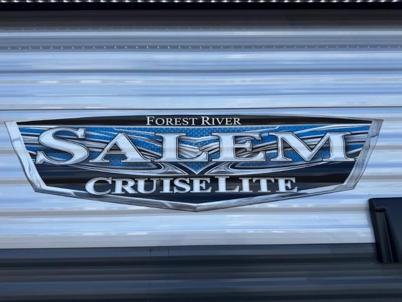 Each one of these Forest River Salem Cruise Lite travel trailers offer quality and value with a full list of great features! They are built with a fully walkable, one piece SuperFlex roof, a powder coated I-beam frame, a cambered chassis, and has R-7 fiberglass insulation throughout to keep the heat in during the winter and the cool air in from the 13.5k A/C during the summer. The aerodynamic front radius profile makes it easier to tow these units, and the diamond plate rock guard will keep your unit protected while traveling down the road. Some of the new features you will enjoy are the upgraded door pulls, the skylight over the shower, the roof-mounted solar prep, and much more!