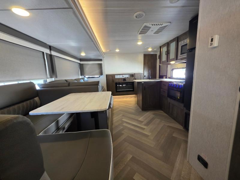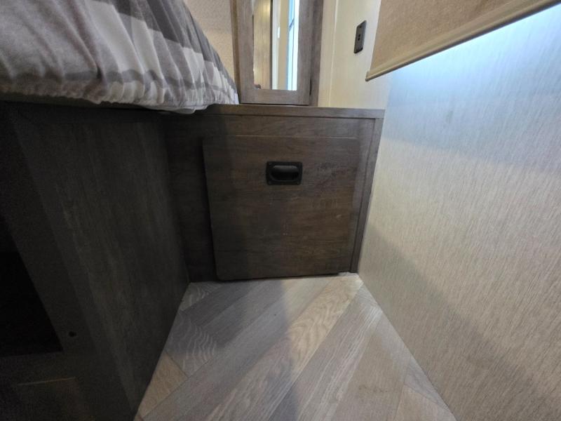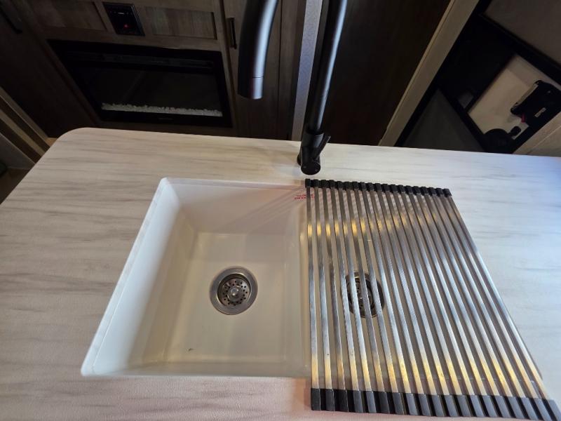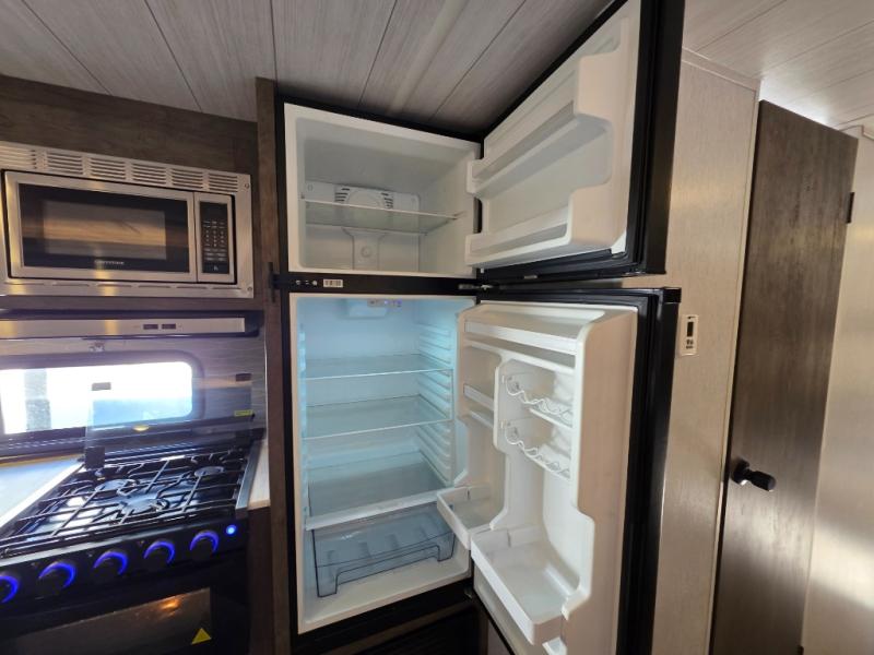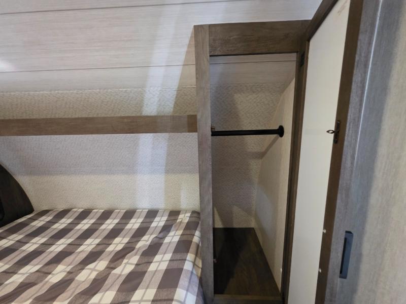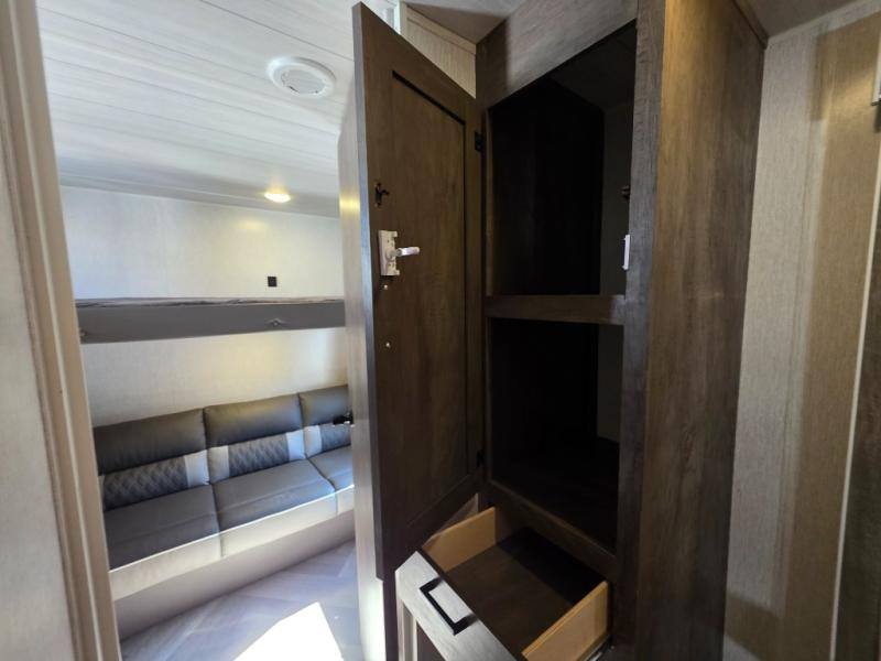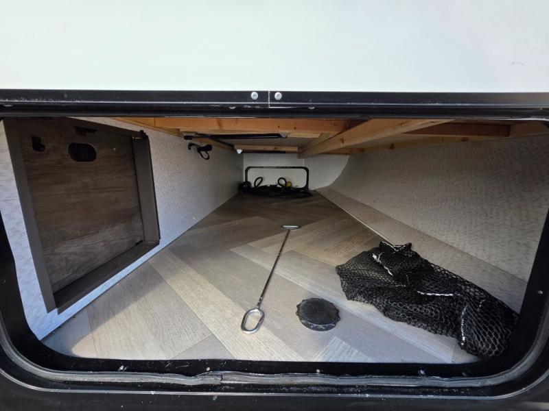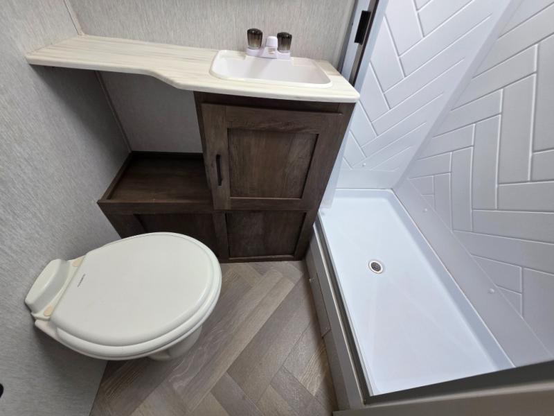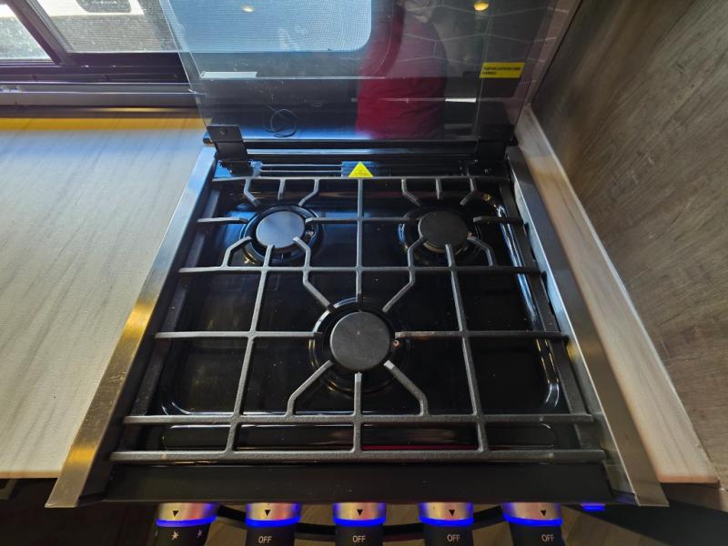 This versatile bunkhouse travel trailer is big enough for the whole family, but still light in weight by weighing in at 6,000 lbs.! The private bunkhouse has a set of 30" x 74" bunk beds and a 30" x 74" bunk bed above a Jiffy sofa. Just outside the bunkhouse is a pantry big enough to store everyone's favorite snacks, and the full bathroom with a walk-in shower. The three burner cooktop is just waiting for you to create a delicious meal, and the U-shaped dinette welcomes you to enjoy your meal in comfort, plus there is a large panoramic window for you to look out at your beautiful scenery. After you have stuffed yourself full, you can head to the Versa-lounge and relax by the fireplace at the entertainment center. The exterior has a pass-through storage area for you to keep your outdoor camping gear, a 16' power awning to protect you, and an exterior camp kitchen!