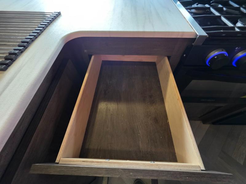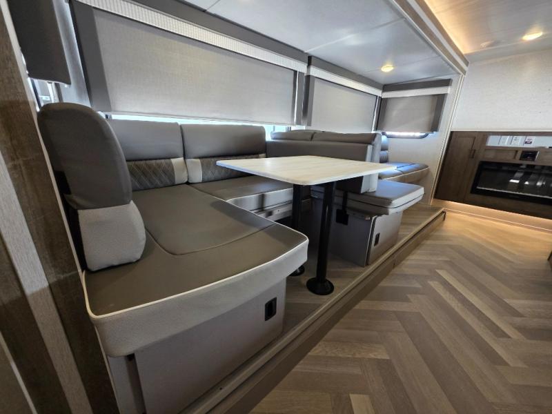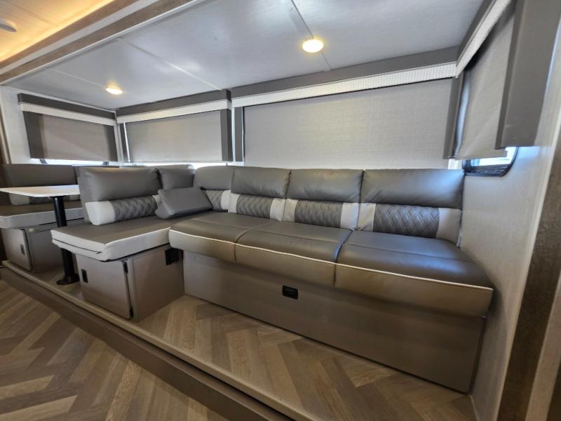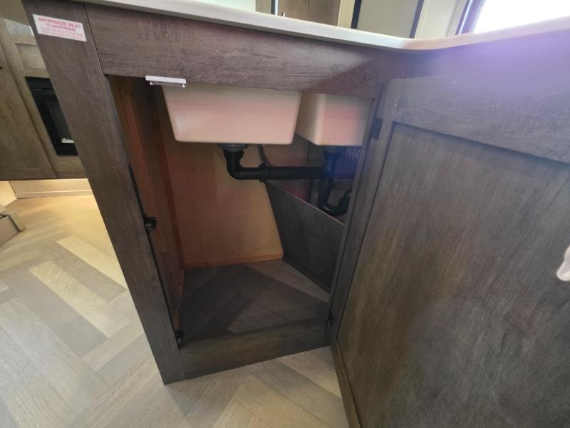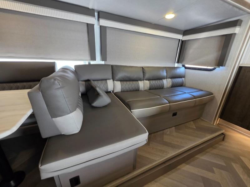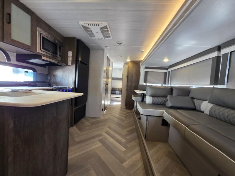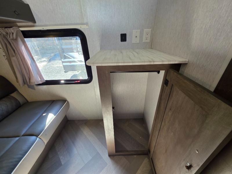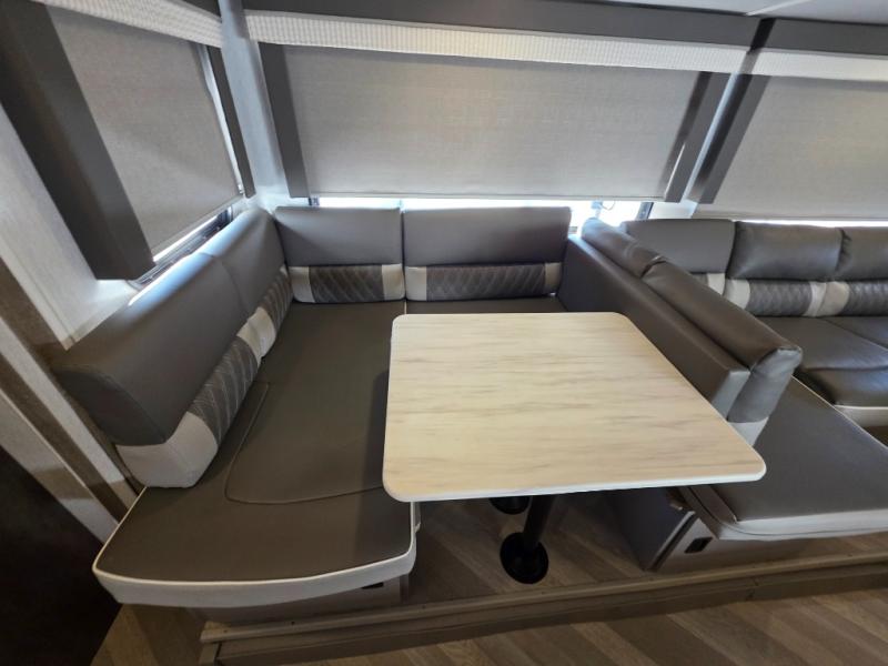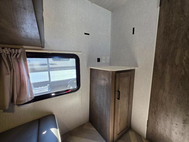 This versatile bunkhouse travel trailer is big enough for the whole family, but still light in weight by weighing in at 6,000 lbs.! The private bunkhouse has a set of 30" x 74" bunk beds and a 30" x 74" bunk bed above a Jiffy sofa. Just outside the bunkhouse is a pantry big enough to store everyone's favorite snacks, and the full bathroom with a walk-in shower. The three burner cooktop is just waiting for you to create a delicious meal, and the U-shaped dinette welcomes you to enjoy your meal in comfort, plus there is a large panoramic window for you to look out at your beautiful scenery. After you have stuffed yourself full, you can head to the Versa-lounge and relax by the fireplace at the entertainment center. The exterior has a pass-through storage area for you to keep your outdoor camping gear, a 16' power awning to protect you, and an exterior camp kitchen!