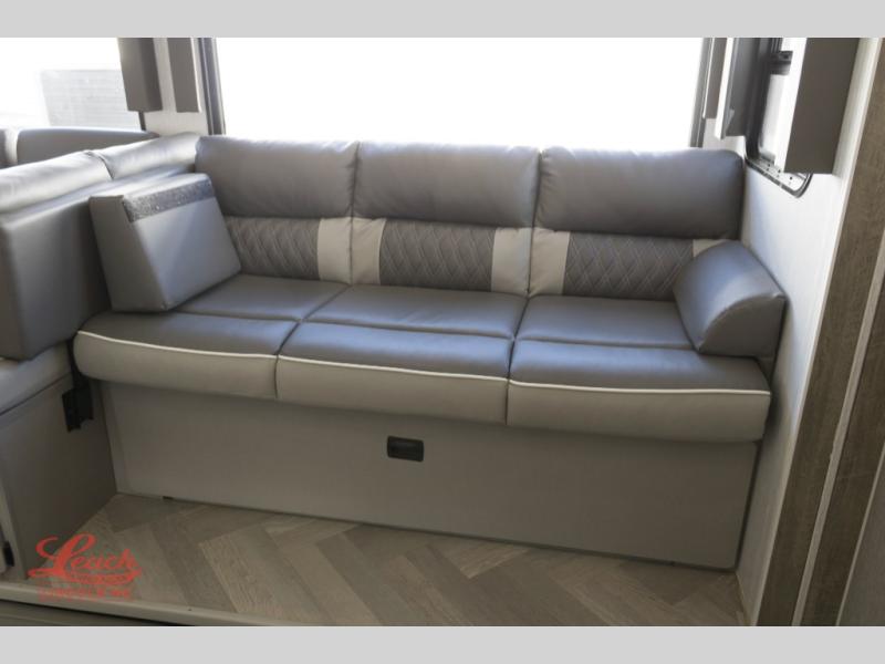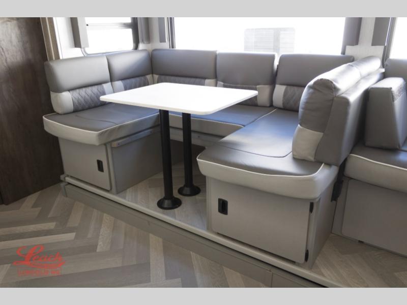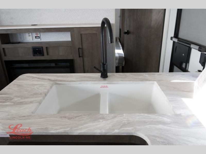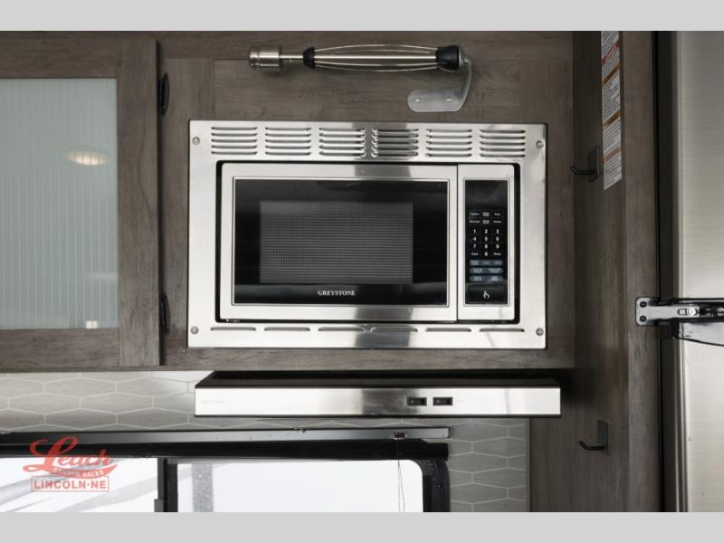 This travel trailer is new to the lineup and offers a large amount of versatility! The rear private bunkhouse has two 30" x 74" Versa-bunks and a Versa- queen bed so that more can join in on the camping fun. Start each morning feeling clean and fresh after showering in the walk-in shower with fiberglass surround then head to the front private bedroom to change. The kitchen has an oversized 11 cu. ft. refrigerator to keep your eggs fresh, a three burner cooktop to fry them up, and a U-shaped dinette to enjoy them at.