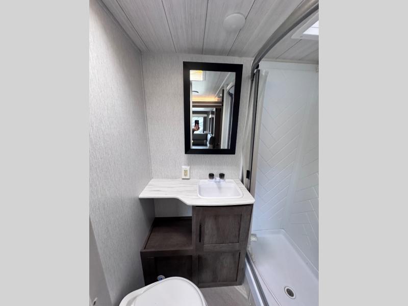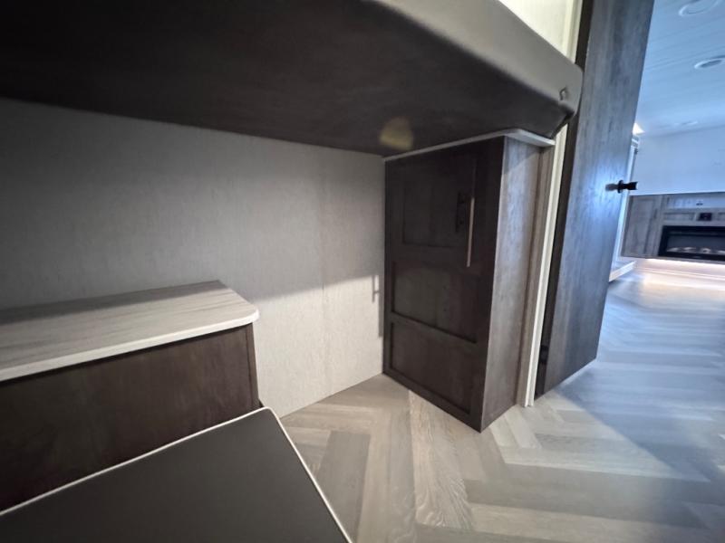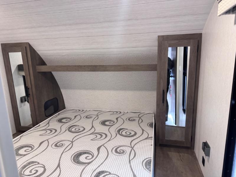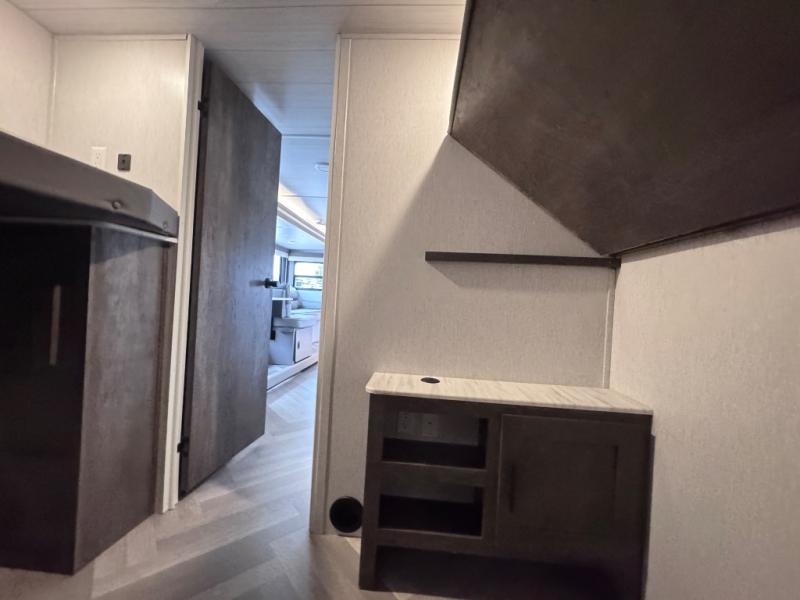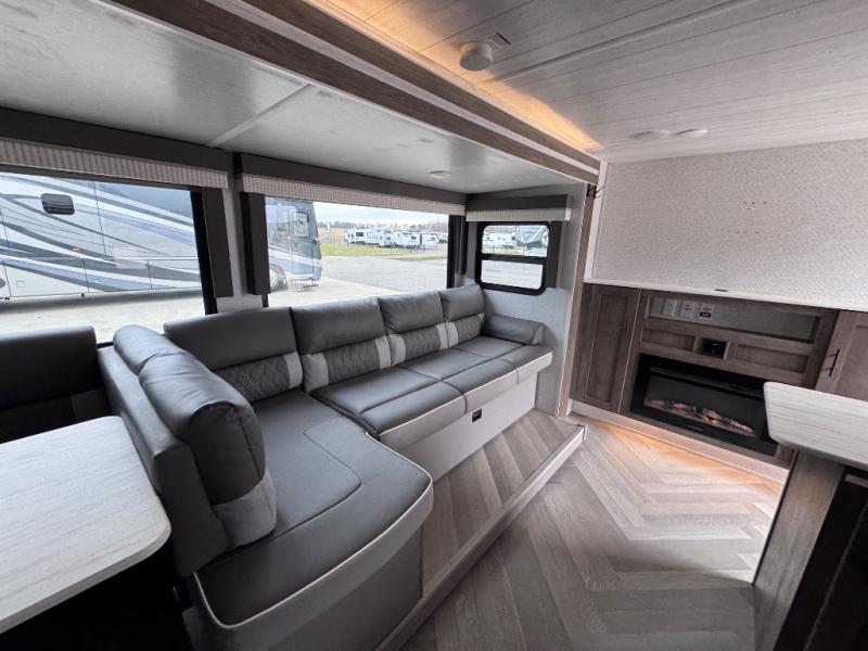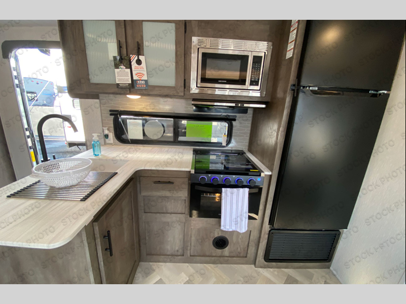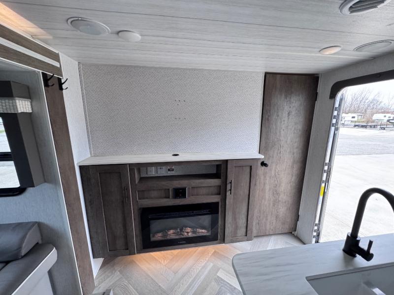 This travel trailer is new to the lineup and offers a large amount of versatility! The rear private bunkhouse has two 30" x 74" Versa-bunks and a Versa- queen bed so that more can join in on the camping fun. Start each morning feeling clean and fresh after showering in the walk-in shower with fiberglass surround then head to the front private bedroom to change. The kitchen has an oversized 11 cu. ft. refrigerator to keep your eggs fresh, a three burner cooktop to fry them up, and a U-shaped dinette to enjoy them at.