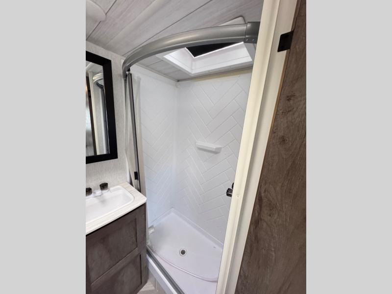Each one of these Forest River Salem Cruise Lite travel trailers offer quality and value with a full list of great features! They are built with a fully walkable, one piece SuperFlex roof, a powder coated I-beam frame, a cambered chassis, and has R-7 fiberglass insulation throughout to keep the heat in during the winter and the cool air in from the 13.5k A/C during the summer. The aerodynamic front radius profile makes it easier to tow these units, and the diamond plate rock guard will keep your unit protected while traveling down the road. Some of the new features you will enjoy are the upgraded door pulls, the skylight over the shower, the roof-mounted solar prep, and much more!
