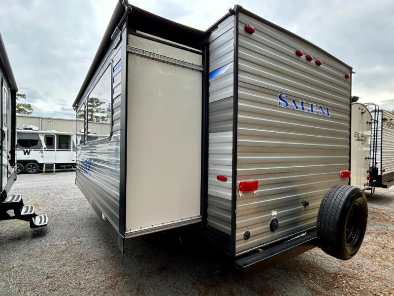 Each one of these Forest River Salem FSX travel trailer and travel trailer toy haulers are fully featured, light weight, and easy to tow making them perfect for a first time or seasoned camper! They are built with a SuperFlex one piece roof, a powder coated I-beam frame, and an aerodynamic front radius profile for better wind resistance. With the largest in class opening panoramic windows, you will have a great view of your beautiful surroundings and enjoy fresh breezes of air throughout. A diamond plate front rock guard will protect your unit from road debris and the Tuffcoat scratch resistant exterior paint helps to keep any dings or bumps from scratching it. The Best-In-Class package comes with a XL folding grab assist handle to safely enter and exit and an upgraded appliance package to prepare your best meals. Each Northwest unit comes with either a 13.5K BTU roof-mounted AC or a roof vent, please contact us for our inventory details and find a model that suits your family best today!