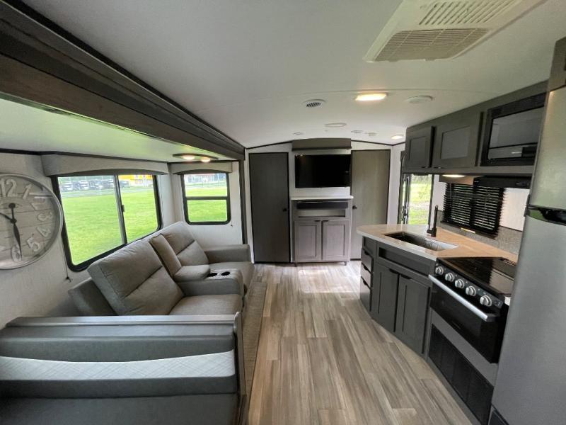 Each one of these Forest River Salem FSX travel trailer and travel trailer toy haulers are fully featured, light weight, and easy to tow making them perfect for a first time or seasoned camper! They are built with a SuperFlex one piece roof, a powder coated I-beam frame, and an aerodynamic front radius profile for better wind resistance. With the largest in class opening panoramic windows, you will have a great view of your beautiful surroundings and enjoy fresh breezes of air throughout. A diamond plate front rock guard will protect your unit from road debris and the Tuffcoat scratch resistant exterior paint helps to keep any dings or bumps from scratching it. The Best-In-Class package comes with an AccessiBelly enclosed underbelly to keep your units vitals safe through every season, a XL folding grab assist handle to safely enter and exit, and an upgraded appliance package to prepare your best meals. Come find the model that best fits your needs today!