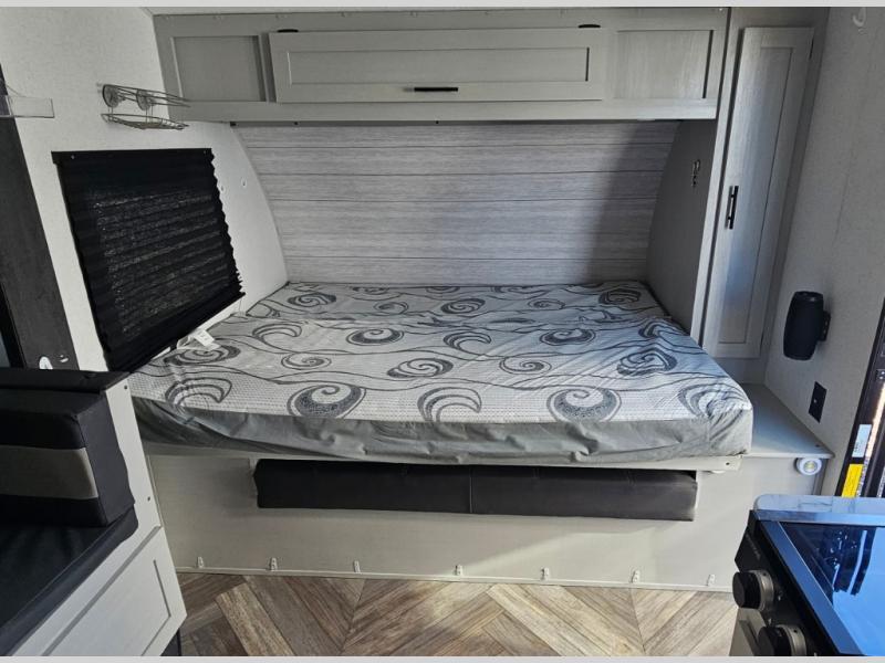 Start camping the right way in this travel trailer! It features a front Murphy bed that has a 60" x 74" queen bed to sleep on and a sofa with storage access to sit on during the day. The corner set of 48" x 72" double bunk beds come with storage to keep things out of the way and are conveniently next to the rear corner bathroom which has a 36" x 24" shower to freshen up in each morning. You can prepare your best home cooked meals indoors with the two burner cooktop or head to the outside LP griddle to fry up some burgers while breathing in some fresh air. Enjoy your meals, play card games, and even sleep at the U-shaped dinette slide. You will also appreciate the outside shower and the exterior front oversized door for storage access.