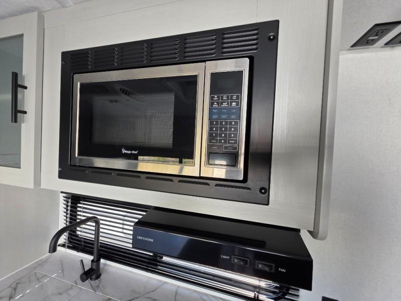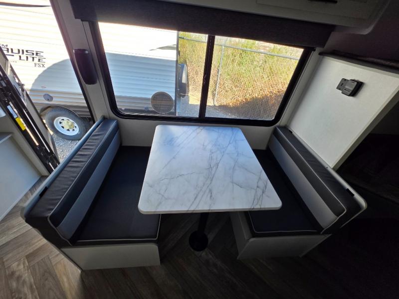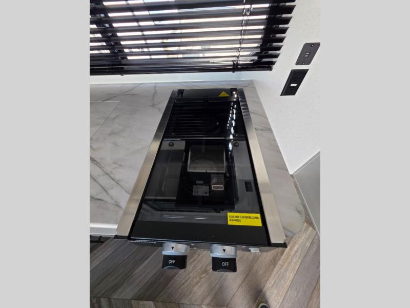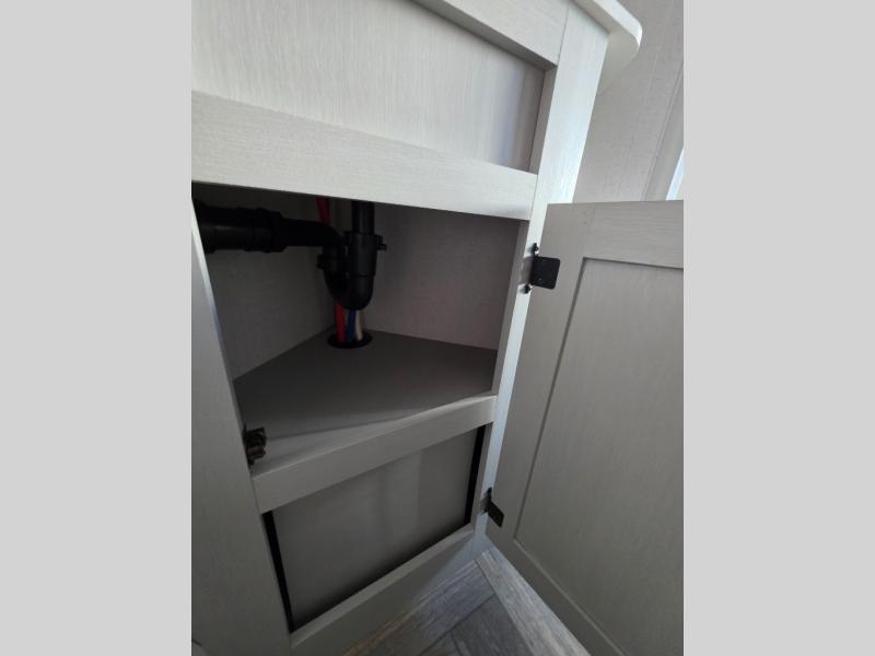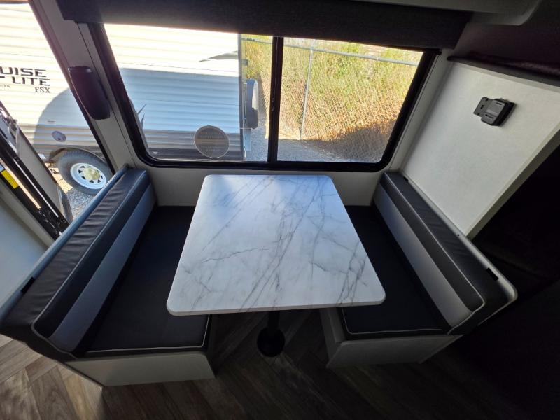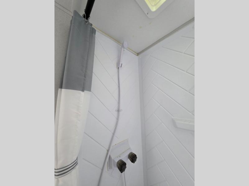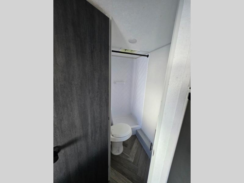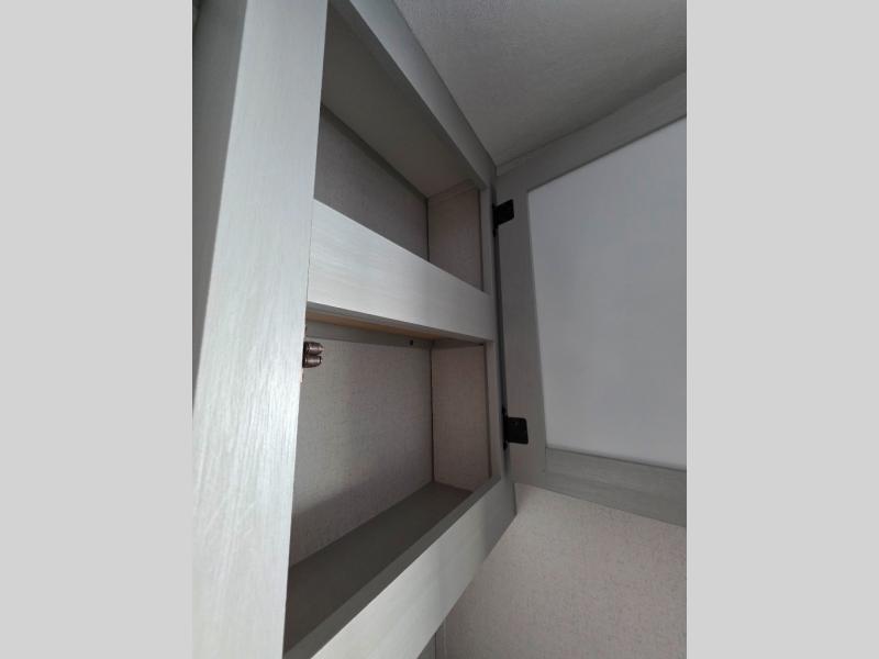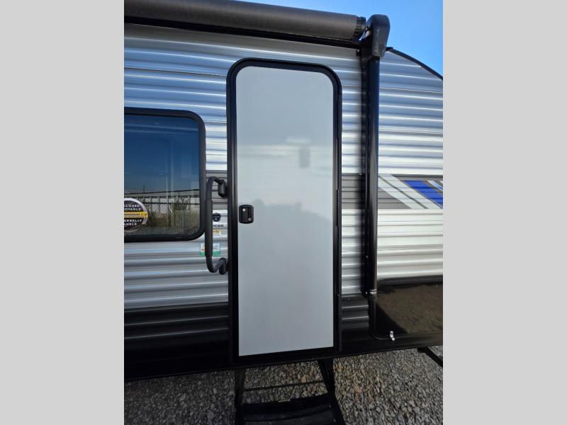 No need will go unmet with this travel trailer! It features a front Murphy bed that has a 60" x 74" queen bed to sleep on and a sofa with storage access to sit on during the day. The corner set of 48" x 72" double bunk beds come with storage to keep things out of the way and are conveniently next to the rear corner bathroom which has a 36" x 24" shower to freshen up in each morning. You can prepare your best home cooked meals indoors with the two burner cooktop or head to the optional outside LP griddle to fry up some burgers while breathing in some fresh air. Enjoy your meals, play card games, and even sleep at the booth dinette. You will also appreciate the outside shower and the front exterior full pass-through storage area for all your outdoor gear.