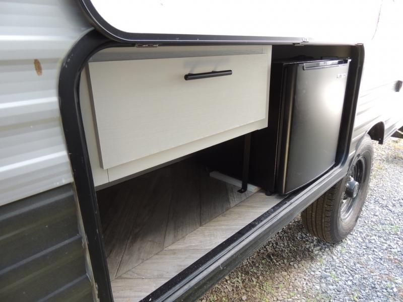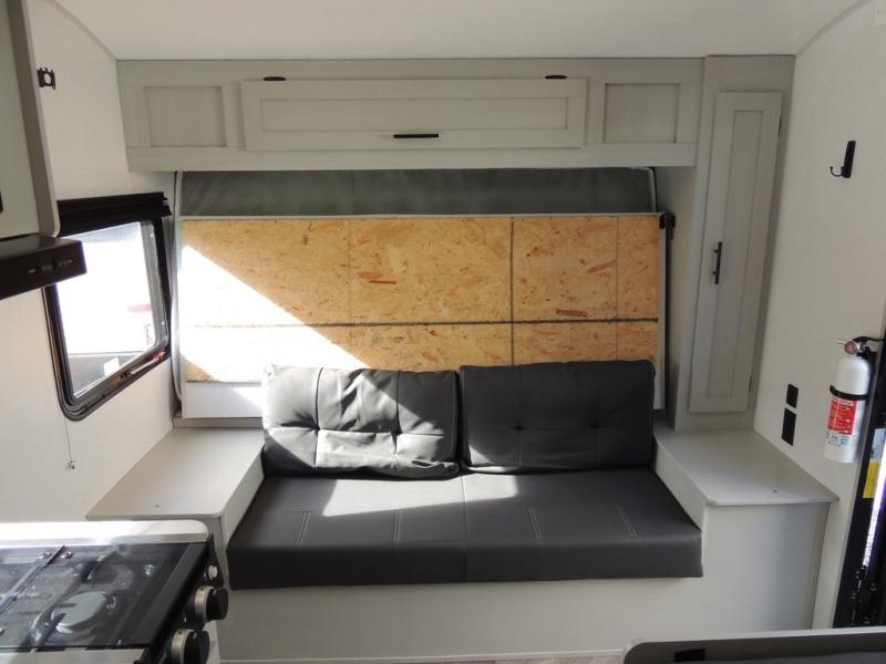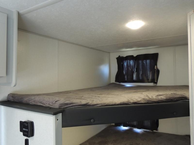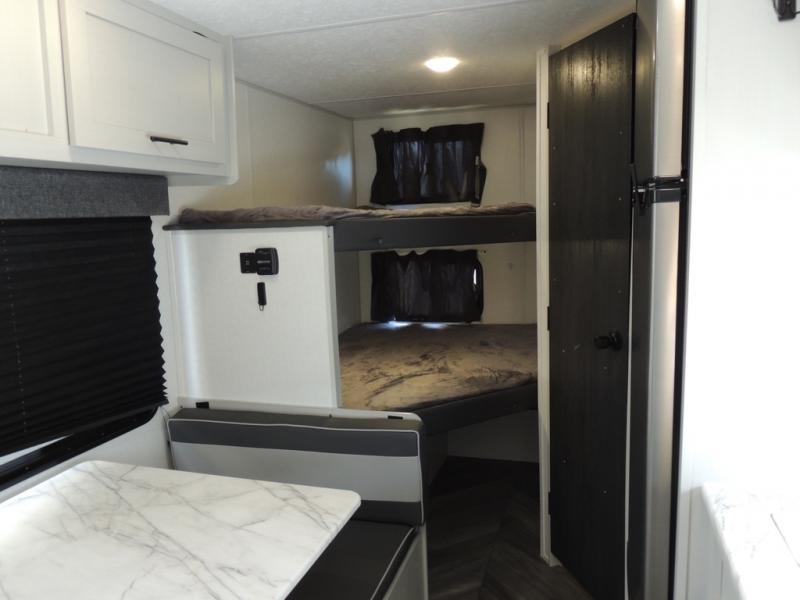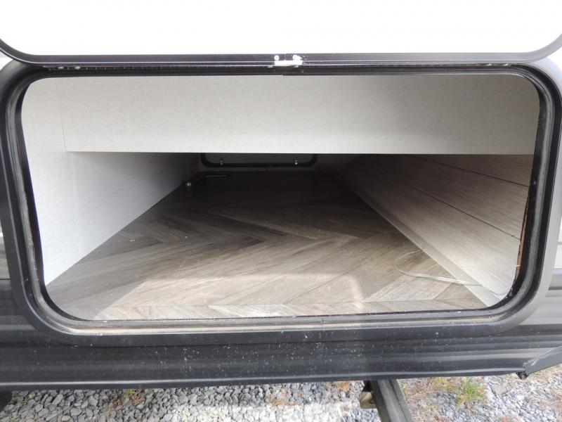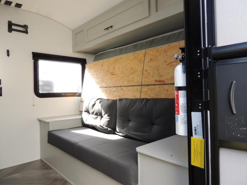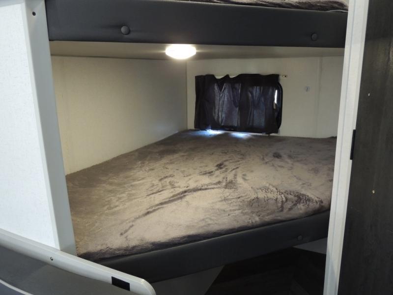 No need will go unmet with this travel trailer! It features a front Murphy bed that has a 60" x 74" queen bed to sleep on and a sofa with storage access to sit on during the day. The corner set of 48" x 72" double bunk beds come with storage to keep things out of the way and are conveniently next to the rear corner bathroom which has a 36" x 24" shower to freshen up in each morning. You can prepare your best home cooked meals indoors with the two burner cooktop or head to the optional outside LP griddle to fry up some burgers while breathing in some fresh air. Enjoy your meals, play card games, and even sleep at the booth dinette. You will also appreciate the outside shower and the front exterior full pass-through storage area for all your outdoor gear.
