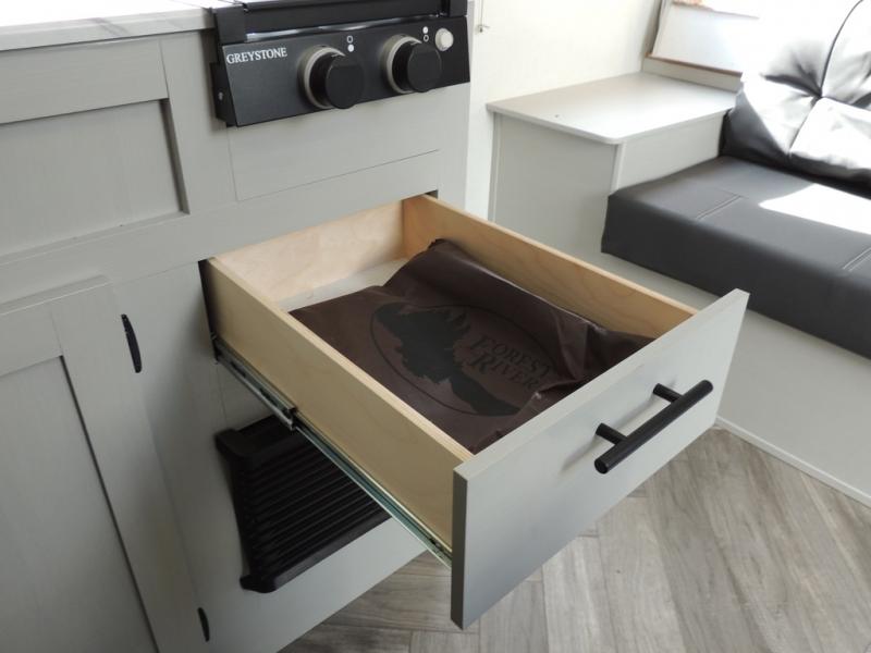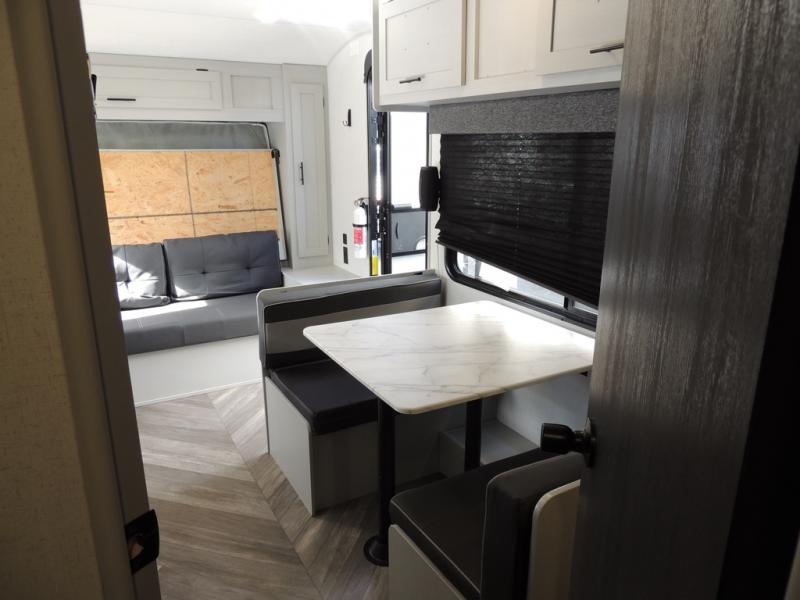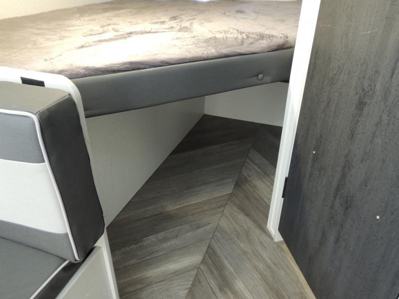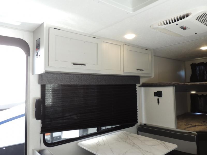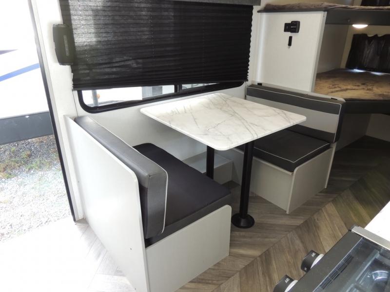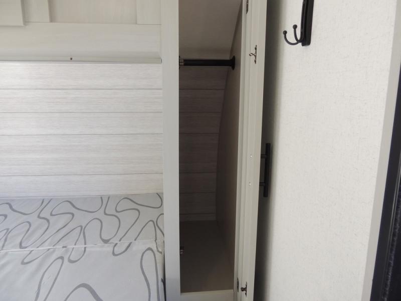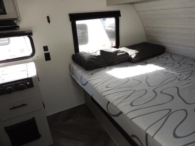 No need will go unmet with this travel trailer! It features a front Murphy bed that has a 60" x 74" queen bed to sleep on and a sofa with storage access to sit on during the day. The corner set of 48" x 72" double bunk beds come with storage to keep things out of the way and are conveniently next to the rear corner bathroom which has a 36" x 24" shower to freshen up in each morning. You can prepare your best home cooked meals indoors with the two burner cooktop or head to the optional outside LP griddle to fry up some burgers while breathing in some fresh air. Enjoy your meals, play card games, and even sleep at the booth dinette. You will also appreciate the outside shower and the front exterior full pass-through storage area for all your outdoor gear.