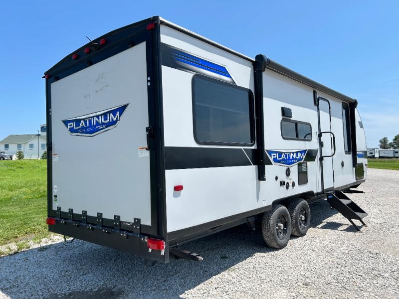 Each one of these Forest River Salem FSX travel trailer and travel trailer toy haulers are fully featured, light weight, and easy to tow making them perfect for a first time or seasoned camper! They are built with a SuperFlex one piece roof, a powder coated I-beam frame, and an aerodynamic front radius profile for better wind resistance. With the largest in class opening panoramic windows, you will have a great view of your beautiful surroundings and enjoy fresh breezes of air throughout. A diamond plate front rock guard will protect your unit from road debris and the Tuffcoat scratch resistant exterior paint helps to keep any dings or bumps from scratching it. The Best-In-Class package comes with an AccessiBelly enclosed underbelly to keep your units vitals safe through every season, a XL folding grab assist handle to safely enter and exit, and an upgraded appliance package to prepare your best meals. Come find the model that best fits your needs today!