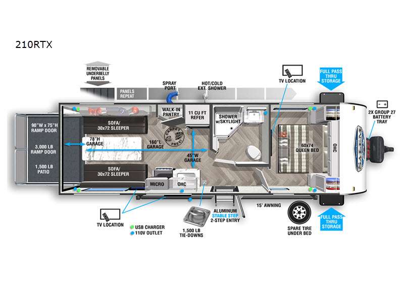 Forest River Salem FSX Platinum Edition toy hauler 210RTX highlights: