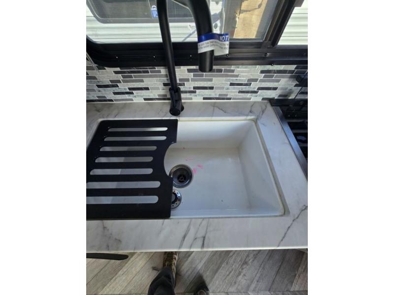 Make the most of your vacations with this Platinum version MAX toy hauler! The 14' garage area includes dual sofa sleepers with a table in between to dine at, plus a 3,000 lb. capacity ramp door for easy unloading. Enjoy the fireplace for a cozy evening indoors while your dinner is cooking on the three-burner cooktop or being heated up in the convection microwave. After a fun day of trail riding, you can clean the mud out of your hair with the 30" x 36" shower in the full bathroom. The front private bedroom has a king bed to lay your head on at night, a closet, and wardrobes on either side of the bed for even more clothing storage space.