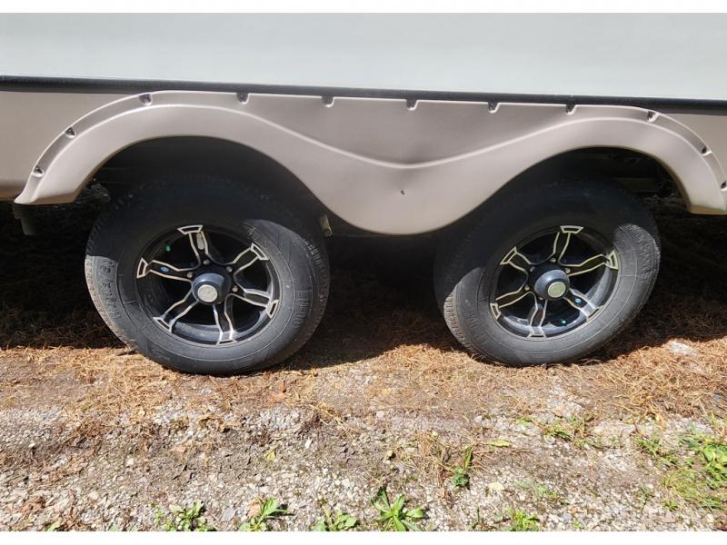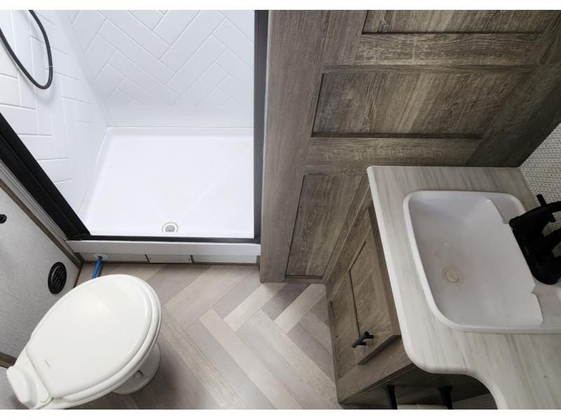 With each Forest River Salem Hemisphere fifth wheel and travel trailer, there are vacuum bonded "Aluma frame" sidewalls and floors, heated and enclosed dump valves and an underbelly, plus an Ivory performance colored exterior fiberglass with Smoked Quartz Metallic accents. A few other features you will love are the 7-way "rain defense" plug holder in the front frame, the extra large pass-through storage, the Hudson Wood agreeable grain cabinetry, and the designer's choice Herringbone Shaw flooring for style and easy clean up!