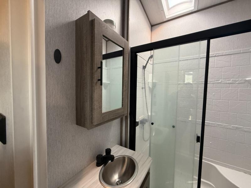With each Forest River Salem Hemisphere fifth wheel and travel trailer, there are vacuum bonded "Aluma frame" sidewalls and floors, heated and enclosed dump valves and an underbelly, plus an Ivory performance colored exterior fiberglass with Smoked Quartz Metallic accents. A few other features you will love are the 7-way "rain defense" plug holder in the front frame, the extra large pass-through storage, the Hudson Wood agreeable grain cabinetry, and the designer's choice Herringbone Shaw flooring for style and easy clean up!