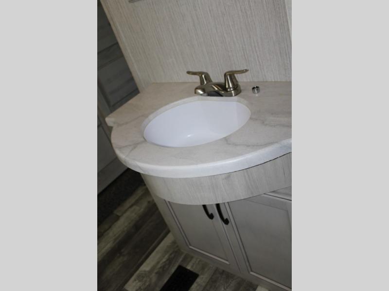 You will find the perfect balance of size, space, features, and luxury with any one of these Forest River Sandpiper fifth wheels! They are constructed with a welded aluminum framed vacuum bonded laminated superstructure, a cambered powder coated frame with rust prohibitor, and a fully enclosed underbelly to protect the units vitals during any season. The large tinted windows come with a 80/20 UV prohibitor and the unobstructed pass-through storage area is big enough to store all of your outdoor gear. You will be able to see clearly even outside at night with the porch light that has an interior switch and the One Touch Dometic electric awning with a LED light strip. The interiors are designed with modern décor, rustic wood plank linoleum, and stainless steel appliances. Don't pass up your chance to camp in true luxury, come find your model today!