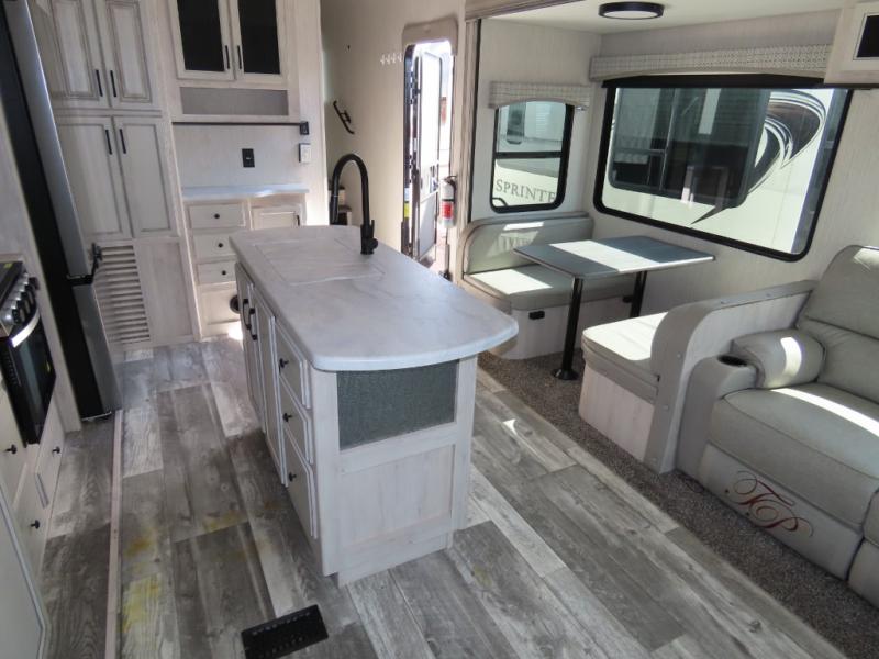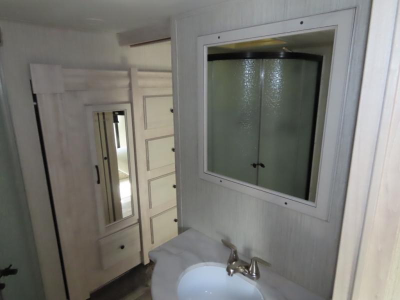 You will find the perfect balance of size, space, features, and luxury with any one of these Forest River Sandpiper fifth wheels! They are constructed with a welded aluminum framed vacuum bonded laminated superstructure, a cambered powder coated frame with rust prohibitor, and a fully enclosed underbelly to protect the units vitals during any season. The large tinted windows come with a 80/20 UV prohibitor and the unobstructed pass-through storage area is big enough to store all of your outdoor gear. You will be able to see clearly even outside at night with the porch light that has an interior switch and the One Touch Dometic electric awning with a LED light strip. The interiors are designed with modern décor, rustic wood plank linoleum, and stainless steel appliances. Don't pass up your chance to camp in true luxury, come find your model today!