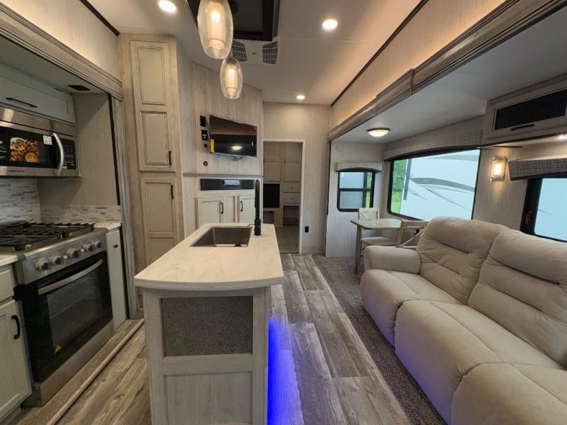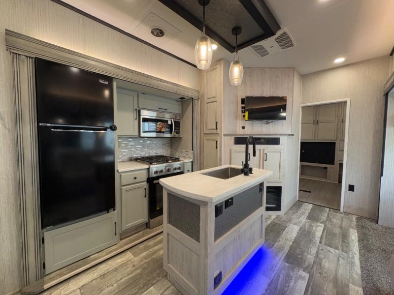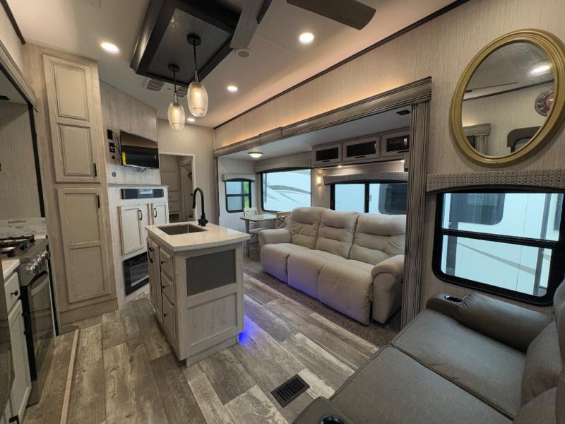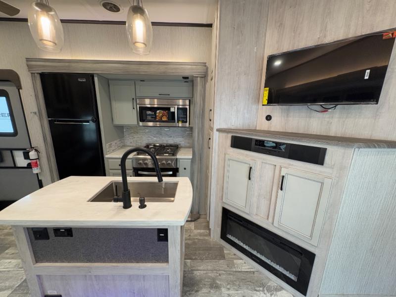 With its rear bunkhouse suite, dual bathrooms, and five expansive slides, this fifth wheel is ideal for families or groups who want both privacy and shared living spaces. Premium finishes, abundant storage, and a fully equipped outdoor kitchen make the Sandpiper Luxury 384QBOK the perfect balance of residential comfort and RV adventure.