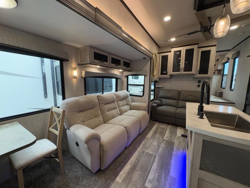 Forest River Sandpiper Luxury 384QBOK – Bunkhouse Suite, Dual Entry, and Five Slides!