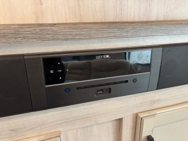 LED-lit power awning and two exterior speakers for outdoor living