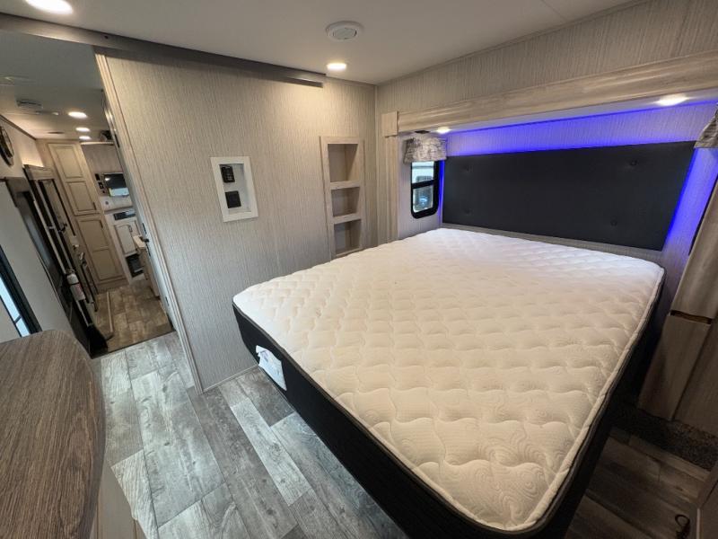 Five slide-outs expand living, kitchen, and bedroom spaces