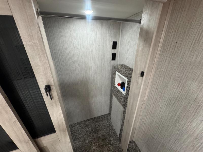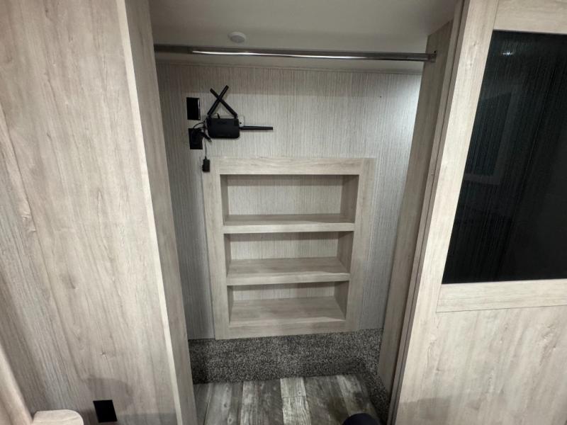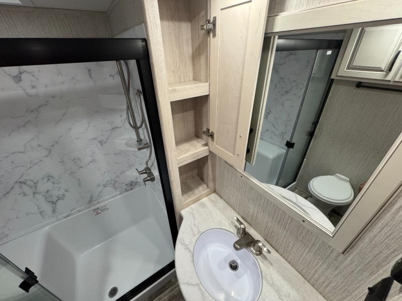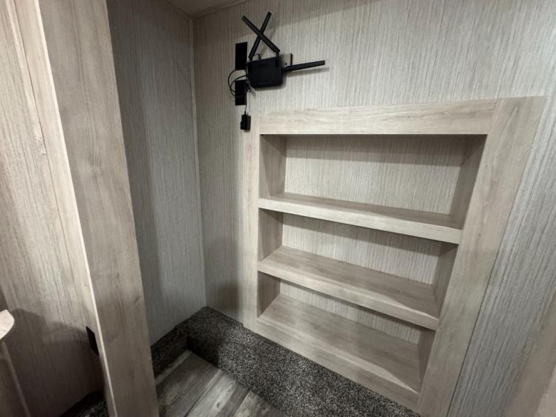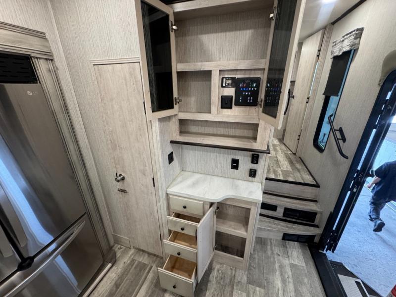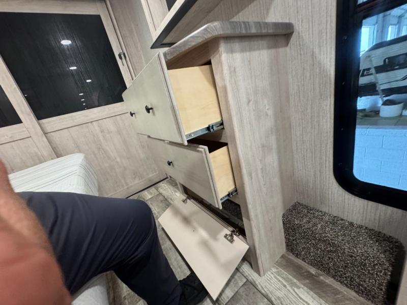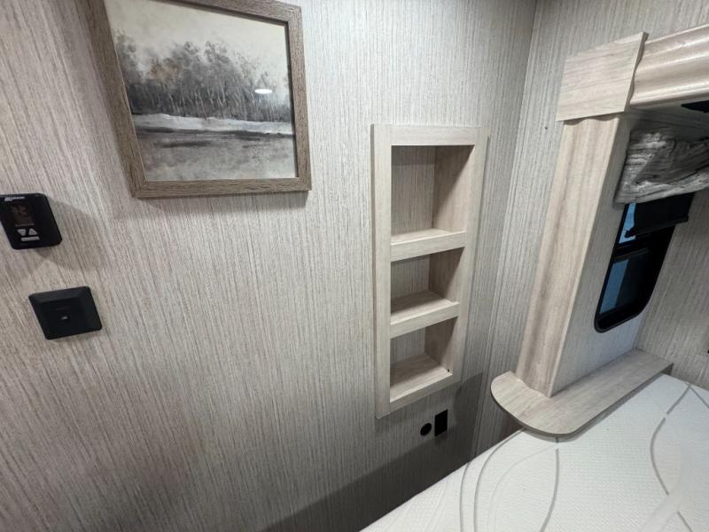 When a brand claims to be luxurious, you expect true luxury, and the Forest River Sandpiper Luxury fifth wheel delivers! The list of included features is outstanding, and the construction itself is top notch. Everything comes together on a welded aluminum-framed, vacuum-bonded laminated superstructure and a cambered powder-coated frame with rust prohibitor. There is a fully enclosed, heated underbelly and an unobstructed drop-frame pass-through storage area with cable jacks and 110V outlet. Two LED-lit exterior speakers add some fun to the outside, and the docking station includes easy winterization, hot and cold spray port, black tank flush, and pull valves for tanks. But the true luxury is found inside with the 84" interior height, residential countertops, recessed residential lighting, extra-large picture windows, LED-lit headboard, and premium sound bar with built-in flush-mount DVD player. Each unit has also been prepped for a washer/dryer so that you can extend every trip and make your Sandpiper Luxury feel more like home.
