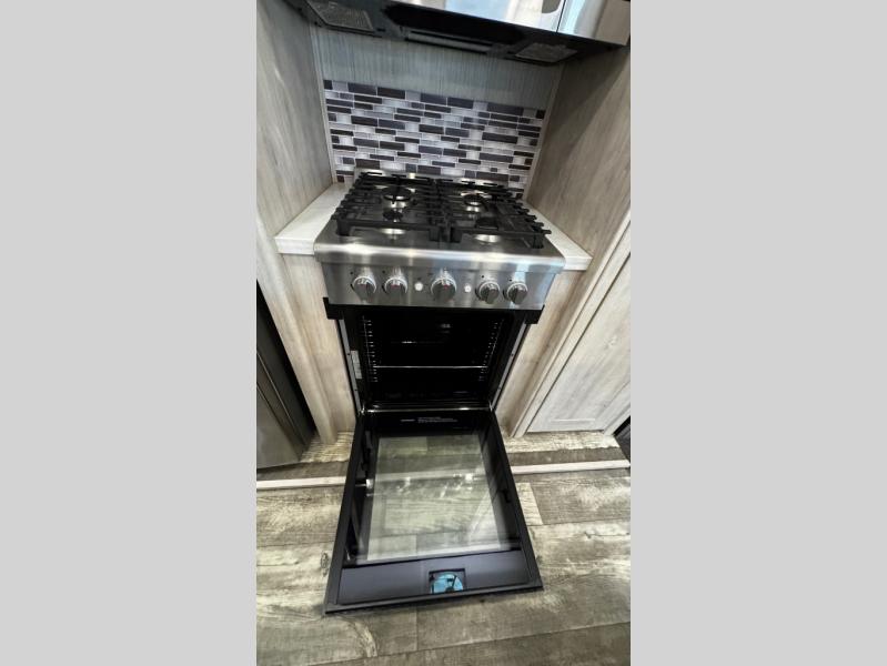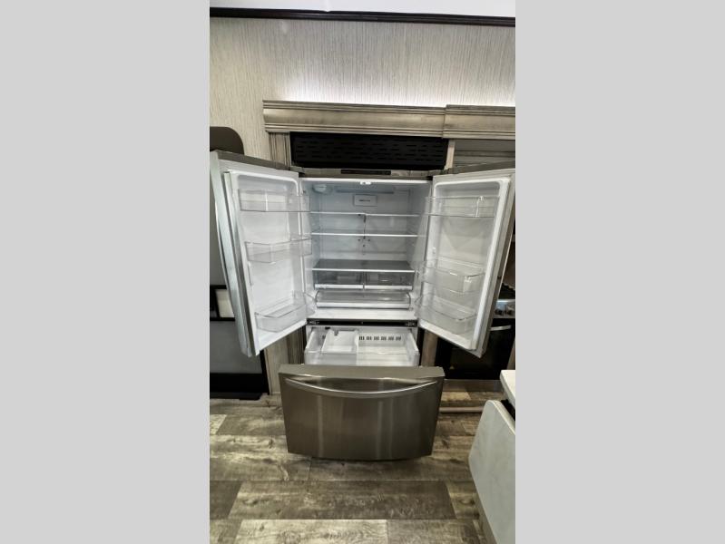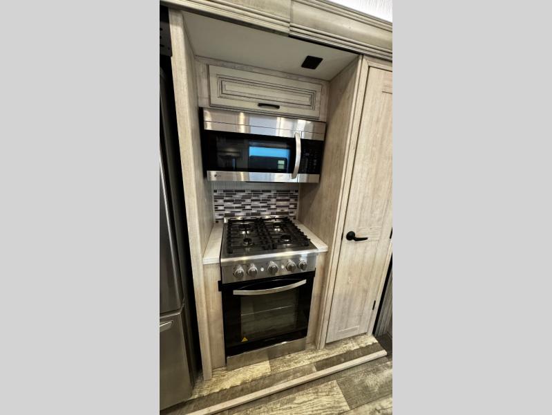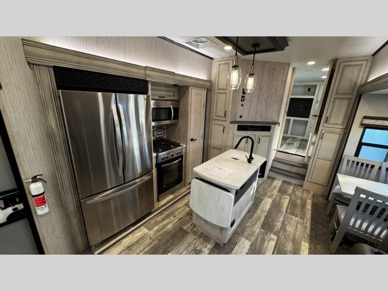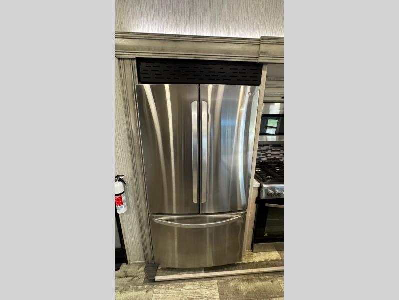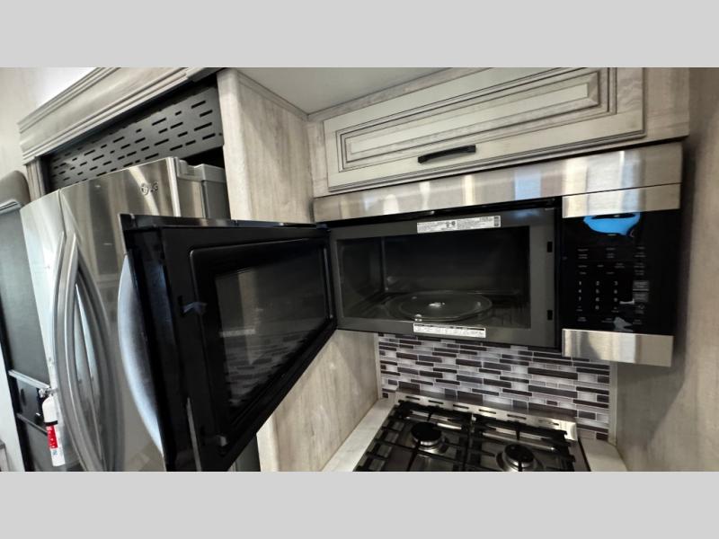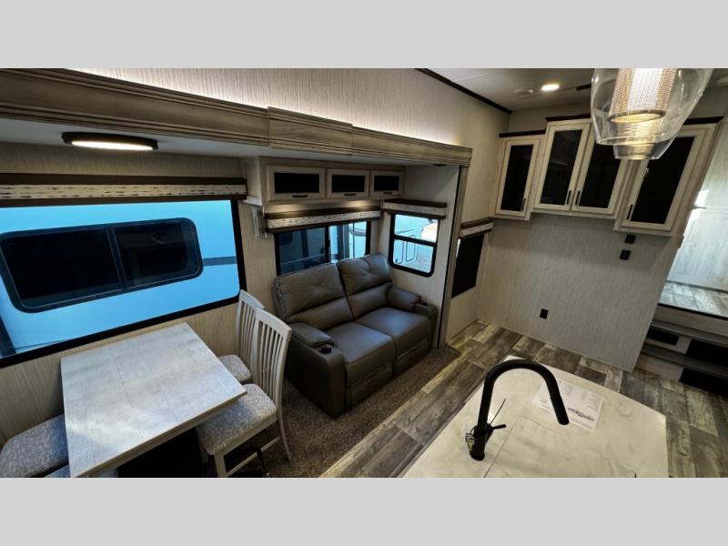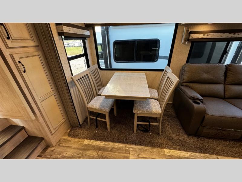 When a brand claims to be luxurious, you expect true luxury, and the Forest River Sandpiper Luxury fifth wheel delivers! The list of included features is outstanding, and the construction itself is top notch. Everything comes together on a welded aluminum-framed, vacuum-bonded laminated superstructure and a cambered powder-coated frame with rust prohibitor. There is a fully enclosed, heated underbelly and an unobstructed drop-frame pass-through storage area with cable jacks and 110V outlet. Two LED-lit exterior speakers add some fun to the outside, and the docking station includes easy winterization, hot and cold spray port, black tank flush, and pull valves for tanks. But the true luxury is found inside with the 84" interior height, residential countertops, recessed residential lighting, extra-large picture windows, LED-lit headboard, and premium sound bar with built-in flush-mount DVD player. Each unit has also been prepped for a washer/dryer so that you can extend every trip and make your Sandpiper Luxury feel more like home.