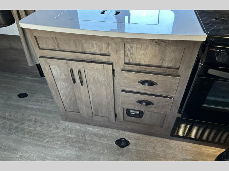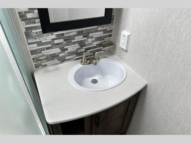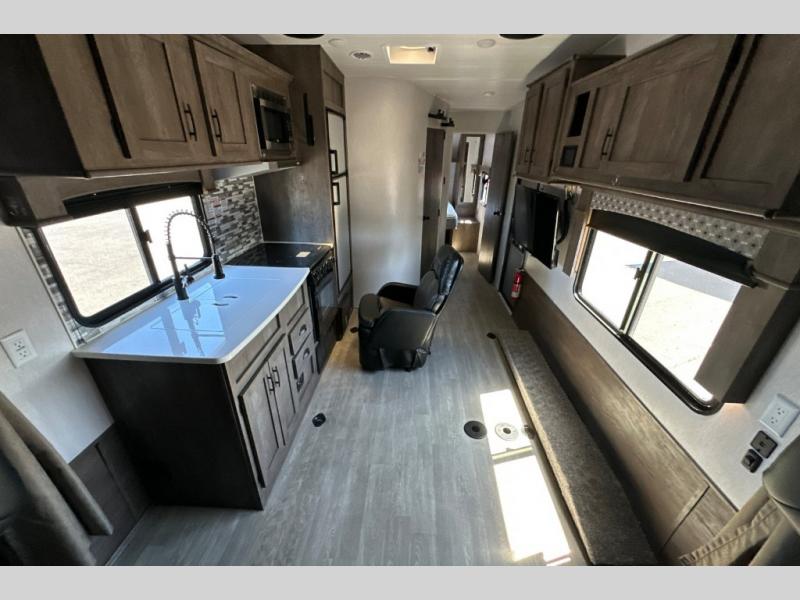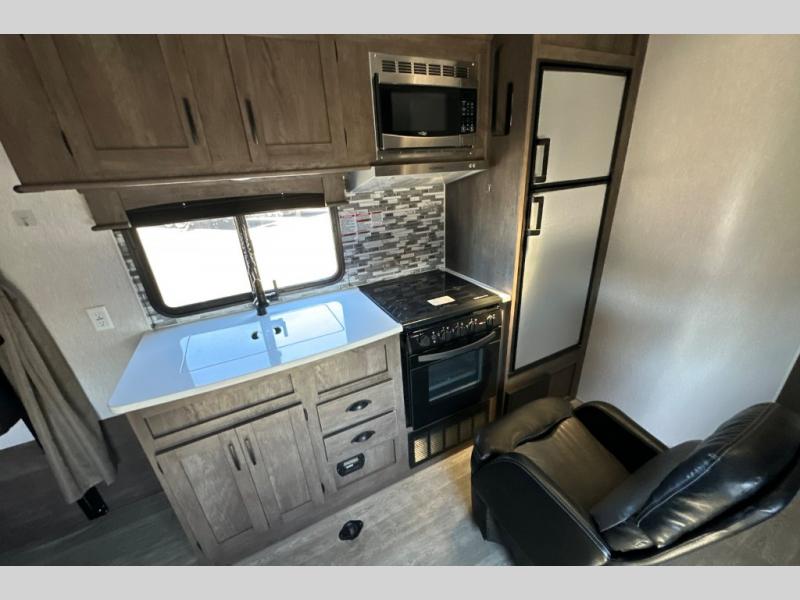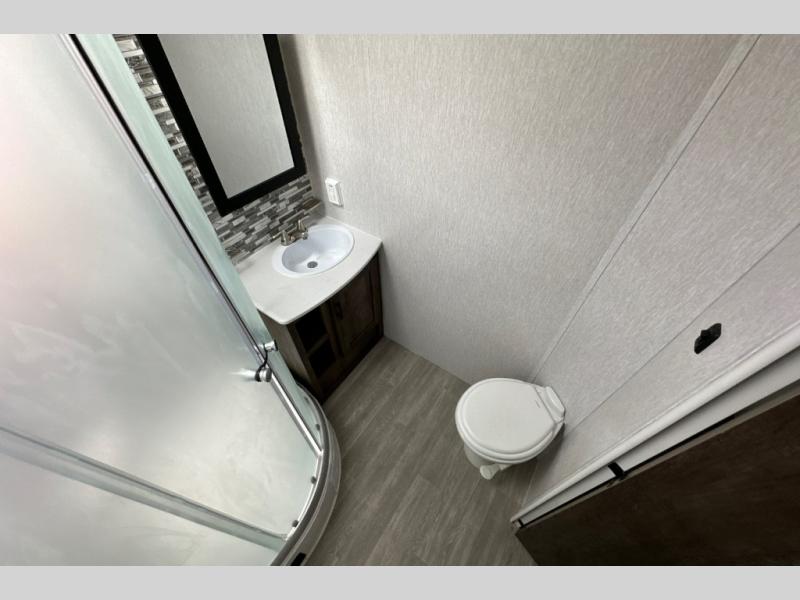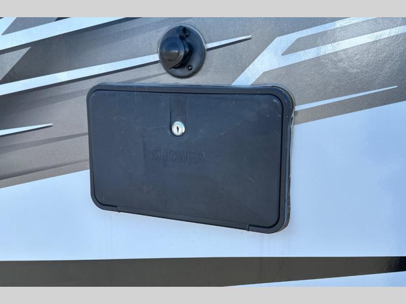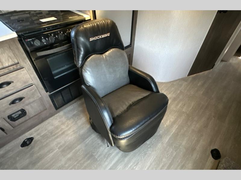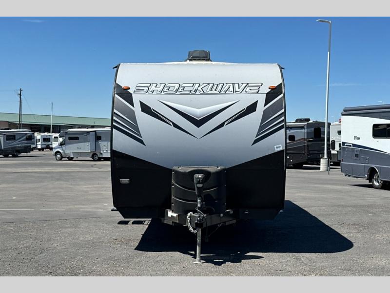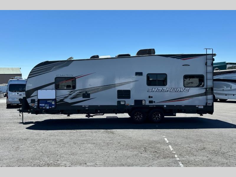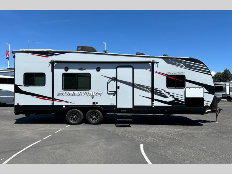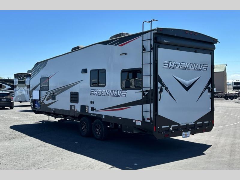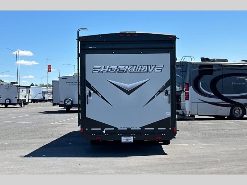 Each Forest River Shockwave DX Series and MX Series travel trailer toy hauler includes a wide body construction, super lube axles, plus an outside shower so you can wash off your riding boots. Inside, you'll enjoy the black chef's high-rise spring faucet make clean-up a breeze, and the 13,500 BTU A/C will keep you cool on those hot summer months. Each model also includes a drive on wheel well on the doorside, a 35 gallon fuel station, plus LED marker and clearance lights to make parking your trailer easier than ever.
