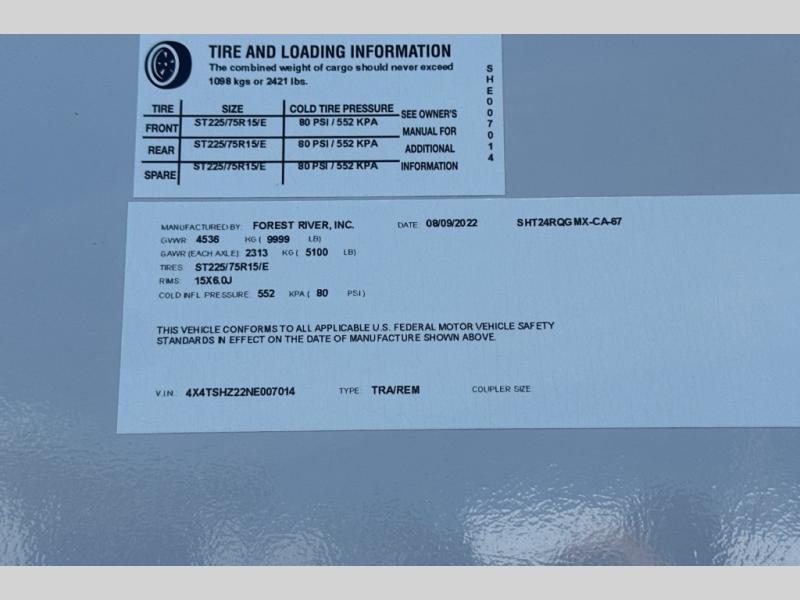 Used 2022 Forest River RV Shockwave 24RQGMX Toy Hauler Travel Trailer