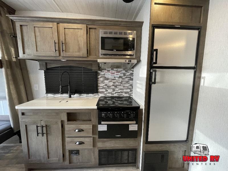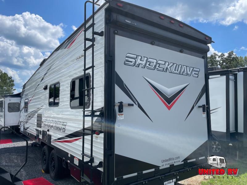 Each Forest River Shockwave DX Series and MX Series travel trailer toy hauler includes a wide body construction, super lube axles, plus an outside shower so you can wash off your riding boots. Inside, you'll enjoy the black chef's high-rise spring faucet make clean-up a breeze, and the 13,500 BTU A/C will keep you cool on those hot summer months. Each model also includes a drive on wheel well on the doorside, a 35 gallon fuel station, plus LED marker and clearance lights to make parking your trailer easier than ever.