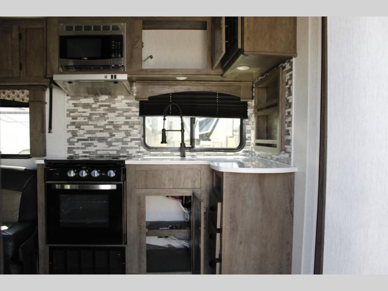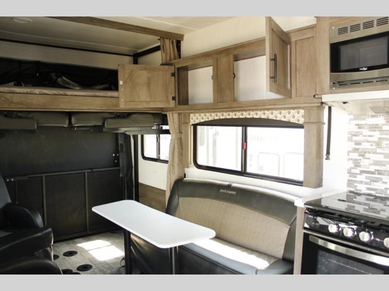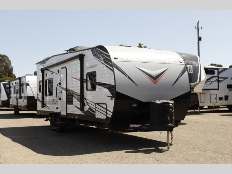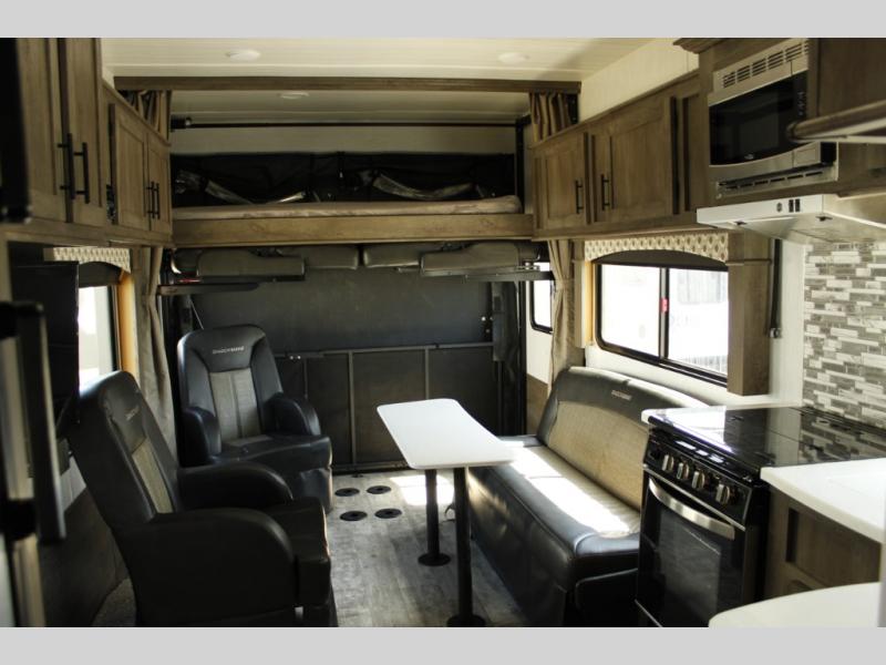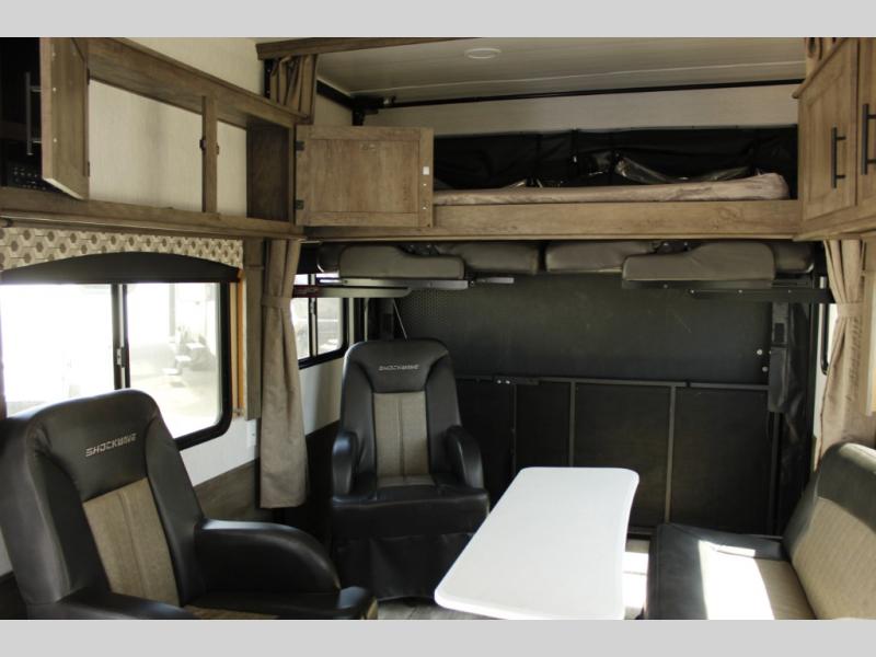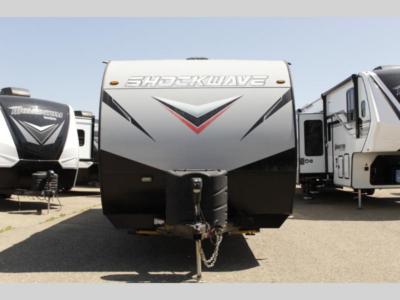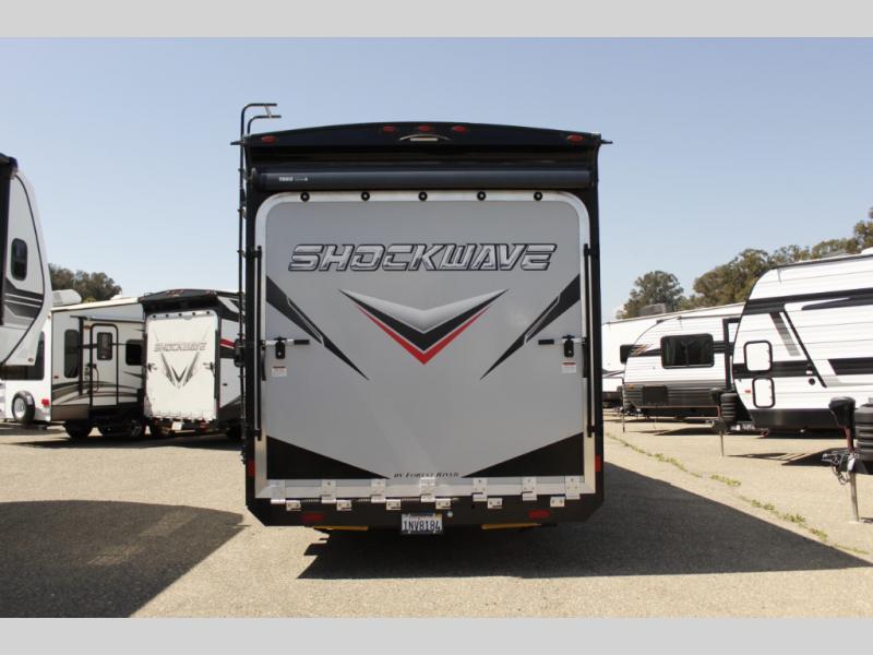 Each Forest River Shockwave DX Series and MX Series travel trailer toy hauler includes a wide body construction, super lube axles, plus an outside shower so you can wash off your riding boots. Inside, you'll enjoy the black chef's high-rise spring faucet make clean-up a breeze, and the 13,500 BTU A/C will keep you cool on those hot summer months. Each model also includes a drive on wheel well on the doorside, a 35 gallon fuel station, plus LED marker and clearance lights to make parking your trailer easier than ever.