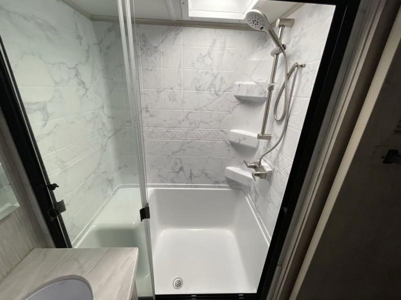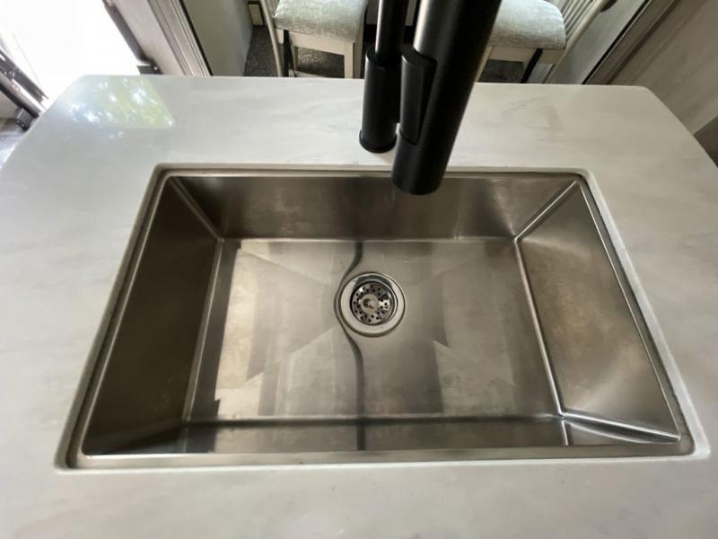 Are you looking to add a little glamour to your camping life? The Forest River Sierra Luxury fifth wheels are luxury units that bring all the fun. These models have an Underbelly Armor, a friction-hinge entry door, an exterior docking station, a high-gloss gel-coat fiberglass exterior, a six-point hydraulic leveling system, and high-efficiency radiant foil for the roof and floor. The interior is stylish and modern with its stainless steel appliances, decorative backsplash, rustic wood plank linoleum, handmade cabinetry, crown molding over the kitchen cabinets, and recessed residential lighting. There is a satellite and cable hookup as well as a King Wi-Fi extender system, and the premium sound bar with built-in flush-mounted DVD player will be great to have when you want to watch a movie.