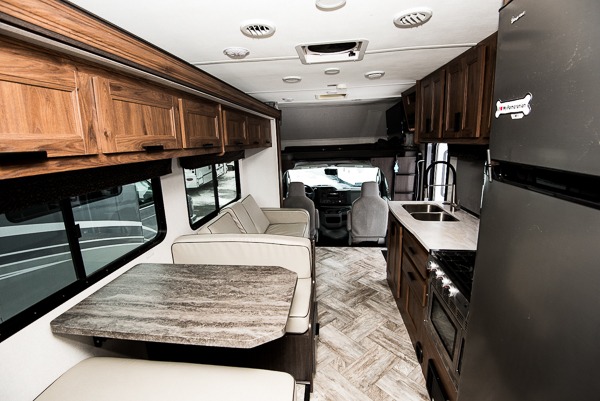 Each Forest River Sunseeker LE Class C gas motorhome comes with the LE Premier Package for your benefit! This package includes great features like backup/sideview cameras with rearview mirror monitor, a fiberglass front cap, an in-dash premium sound system with Bluetooth, a Winegard Air 360+ antenna with preparation for Gateway 4G Wi-Fi, toppers for the slide outs, and a 15,000 BTU ceiling-ducted, ultra-quiet roof air with heat pump. All of these premium features rest on a Superlite composite substrate, 2"-thick gel-coat sidewalls with lightweight composite waterproof material, block-foam insulation, and a fiberglass roof. There is a satellite/cable connection, a 30,000 BTU furnace, a Maxx Air multi-speed power fan, and black-out roller shades.