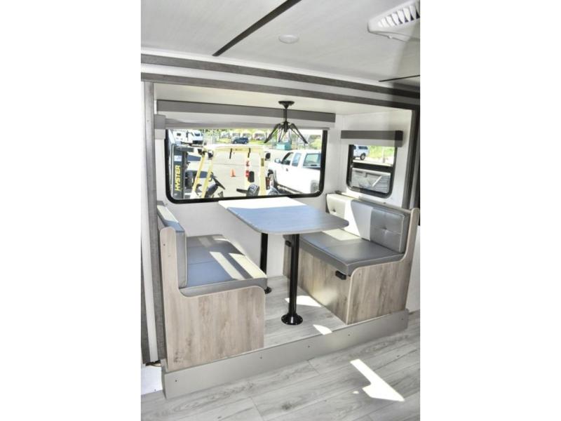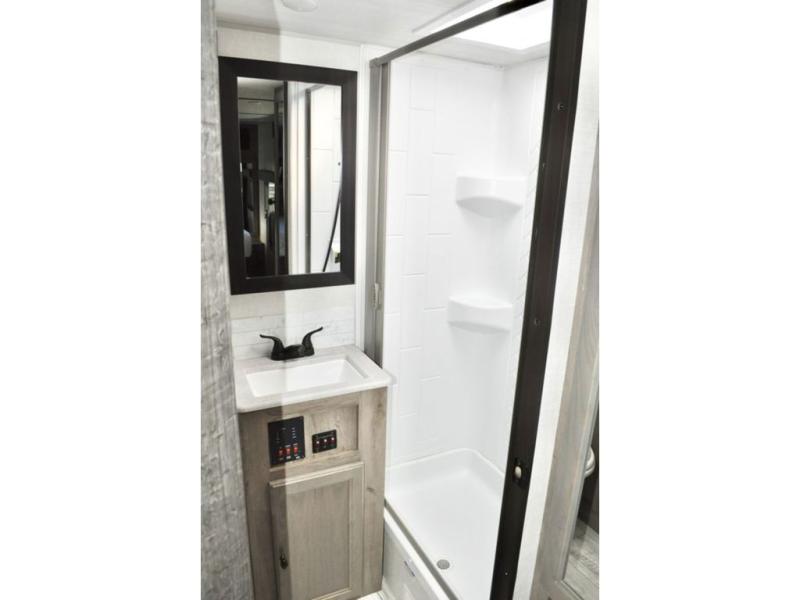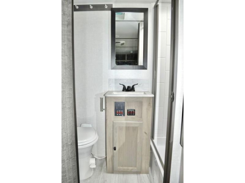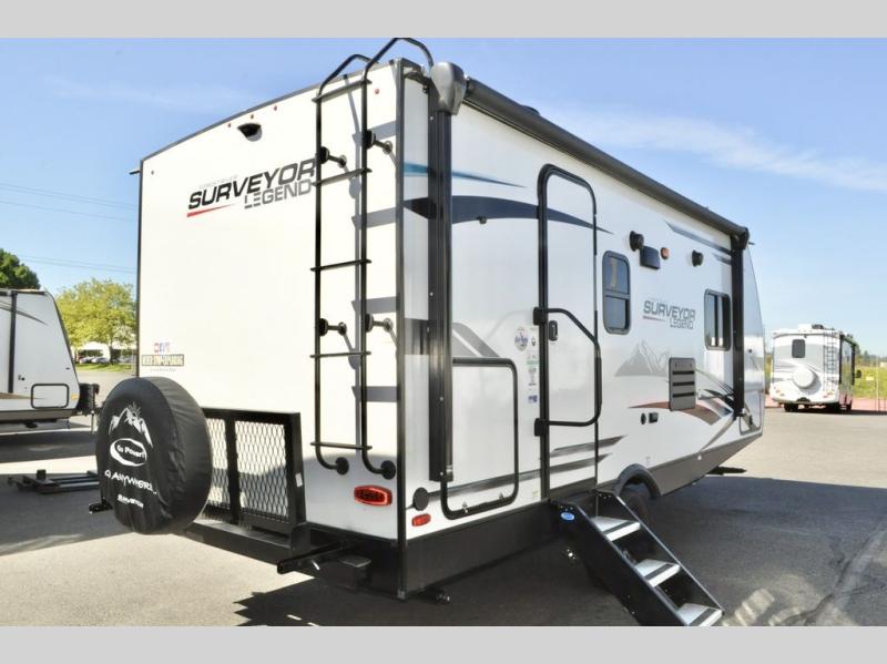 With any Surveyor Legend travel trailer by Forest River you will enjoy quality craftsmanship, convenient amenities, and at-home comforts. The Azdel composite panels provide a longer-lasting trailer, and the power tongue jack will get you back on the road in no-time. Each model includes the Surveyor Legend Package that comes standard with pleated night shades, an automotive style tinted front windshield, a multi-zone Bluetooth stereo, and more. You'll enjoy the one-touch electric awning with LED lights outdoors, plus rooftop solar prep and rear camera prep to make parking easier than ever. The inside will have you feeling right at home with Surf(x) seamless countertops, Congoleum designer carefree linoleum, residential faucets in the bath and kitchen, plus many more essentials you won't want to camp without.
