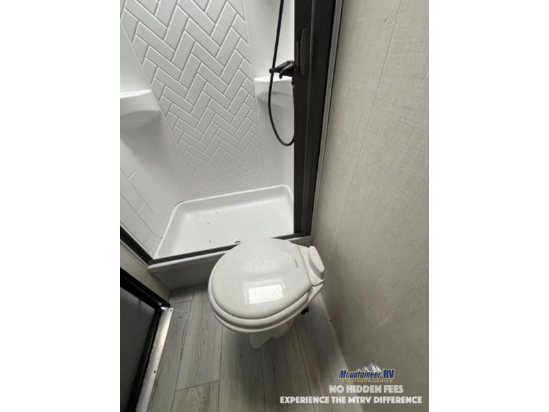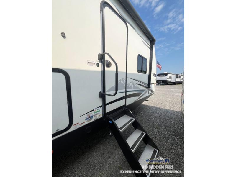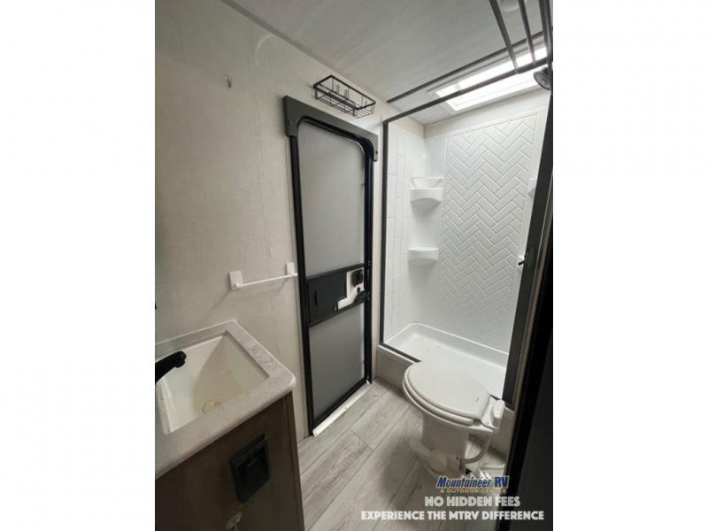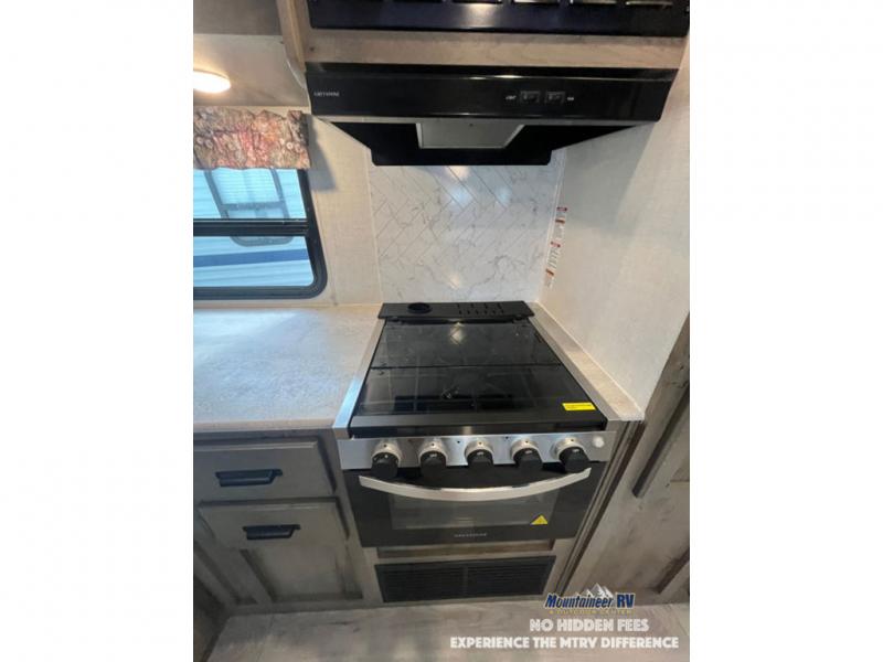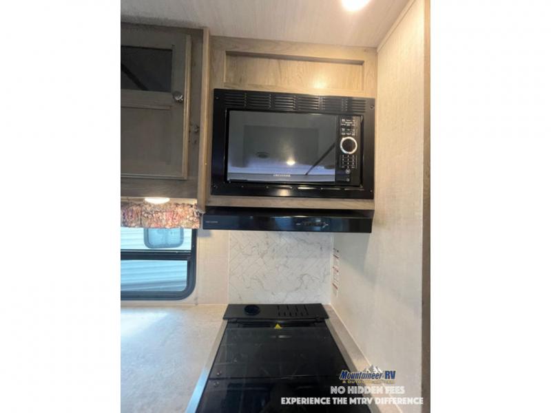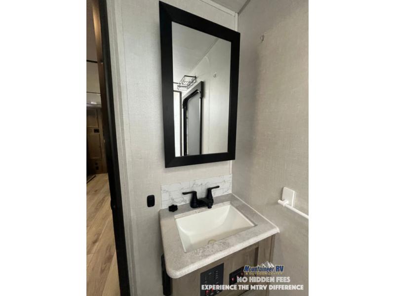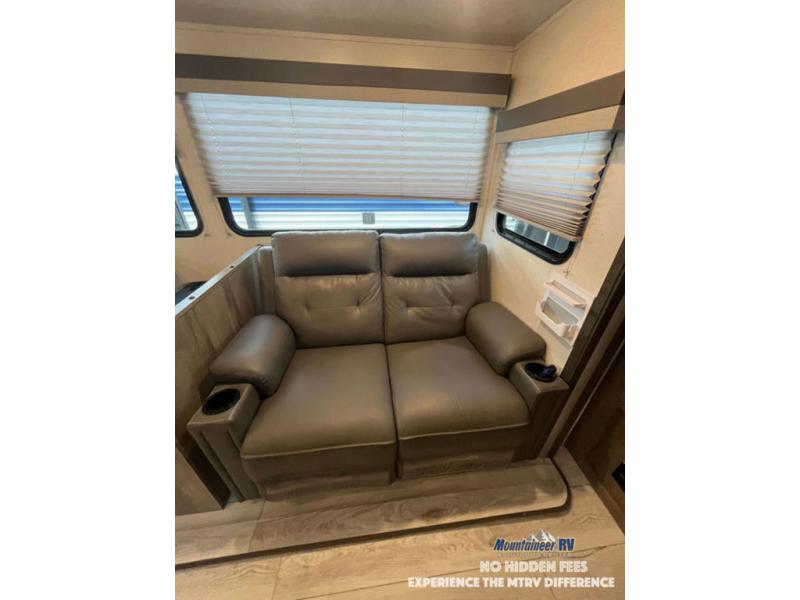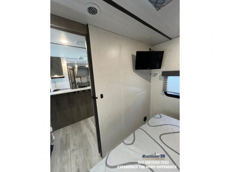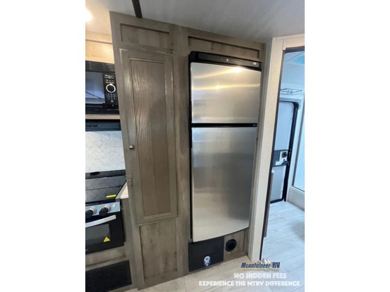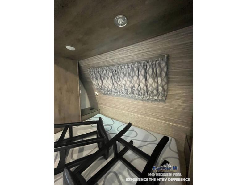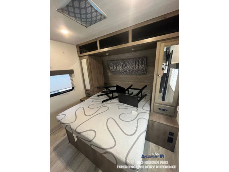 This dual entry travel trailer is the ultimate getaway for your weekend trips to the lake. You can easily bring along the mountain bikes with the under-bunk storage, and the rear storage door will make it easy to get them out when you're ready to ride. Within the large slide out you'll find a booth dinette and tri-fold sofa for seating and sleeping space, plus there is a breakfast bar with stools the little ones are sure to love. Check out the beautiful barn doors that lead to the front bedroom where you'll find a queen-size bed and dual wardrobes. Don't let this travel trailer slip away!