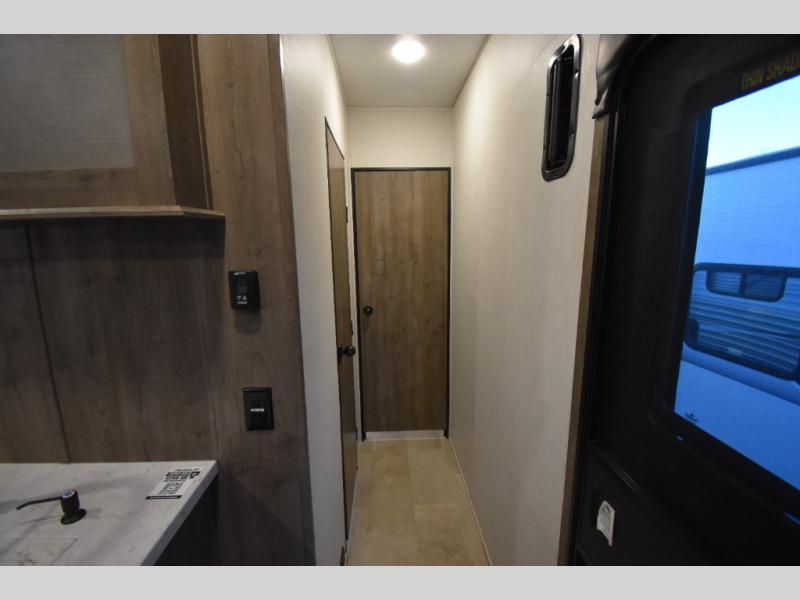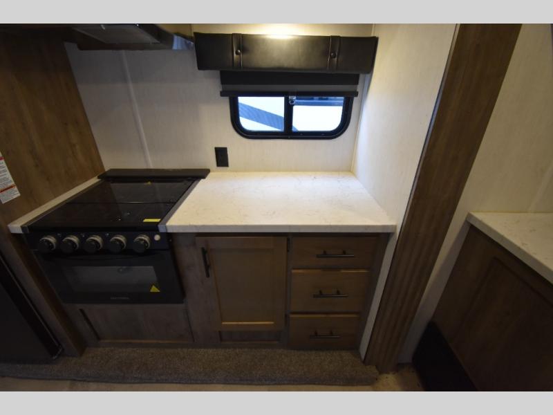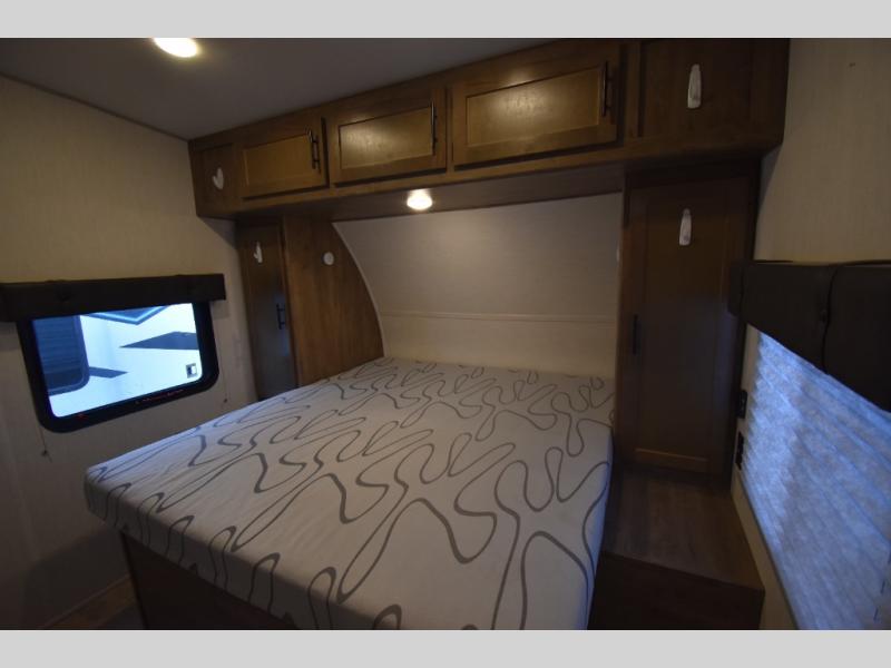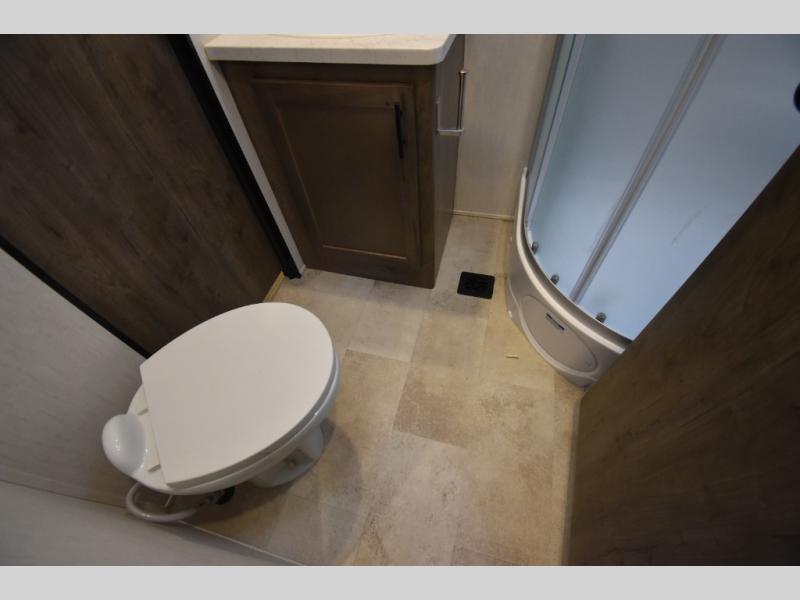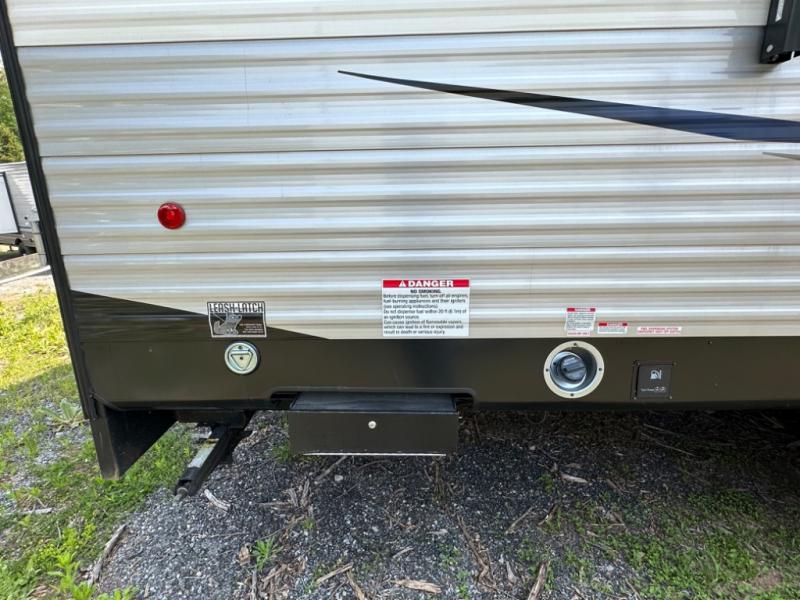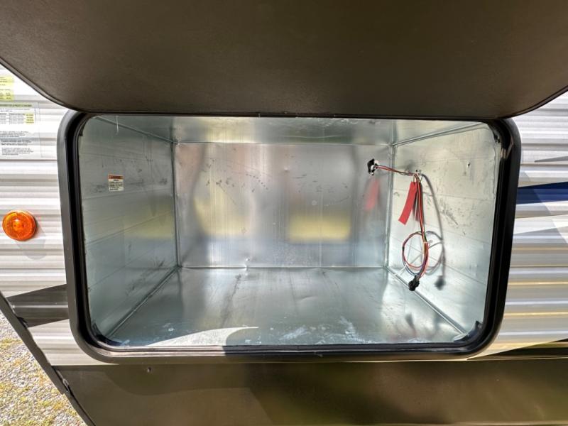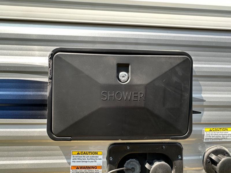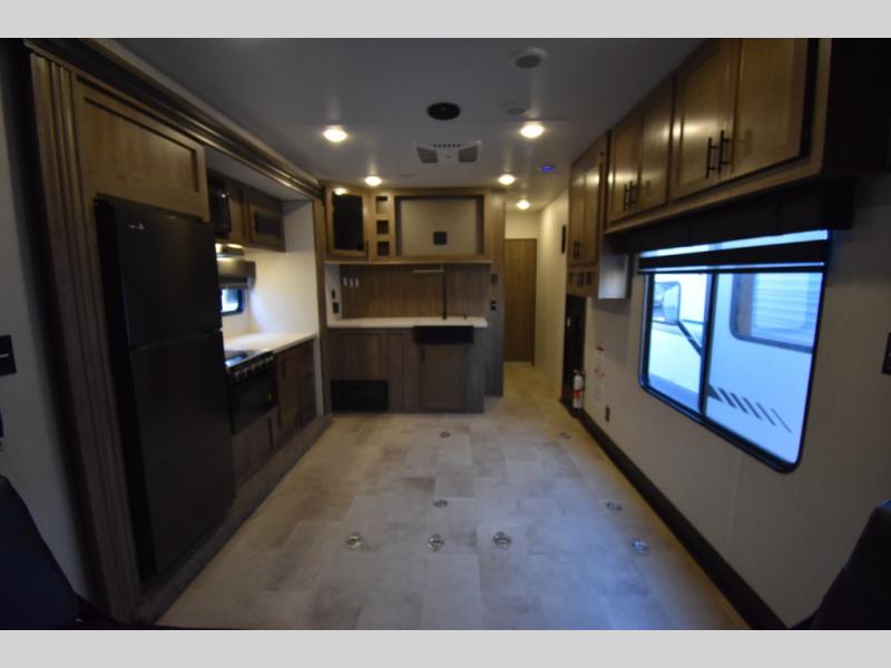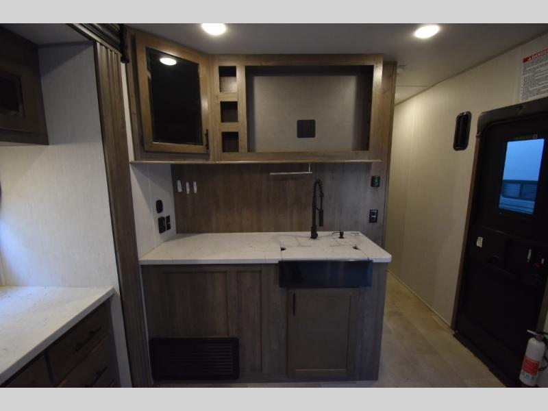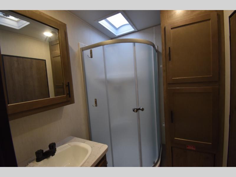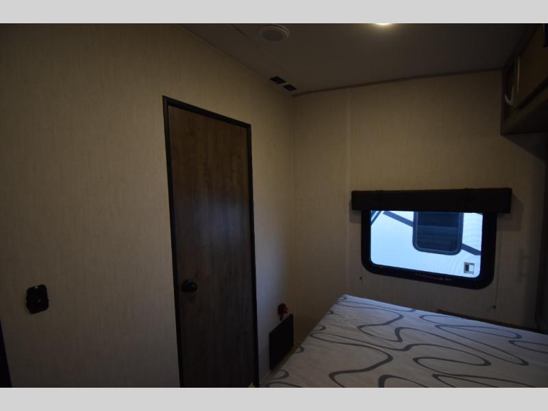 Camping with your favorite ride-on toys is easier than ever in this toy hauler. The 15' total garage space provides tons of space for your gear, plus there is a slide out that will give the chef more room to cook meals. Relax on the roll-overs sofas or add the optional lounge chairs for a more at-home feel. There is plenty of counter space in the kitchen, plus a pantry for snacks or dry goods. You will appreciate the dual entry bath that will give you a private entrance into the front bedroom. Here, you can sleep soundly on the king bed and store your clothes in the dual wardrobes.