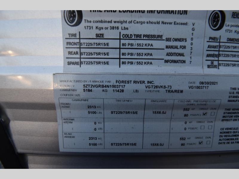 Used 2022 Forest River RV Vengeance Rogue 26VKS Toy Hauler Travel Trailer